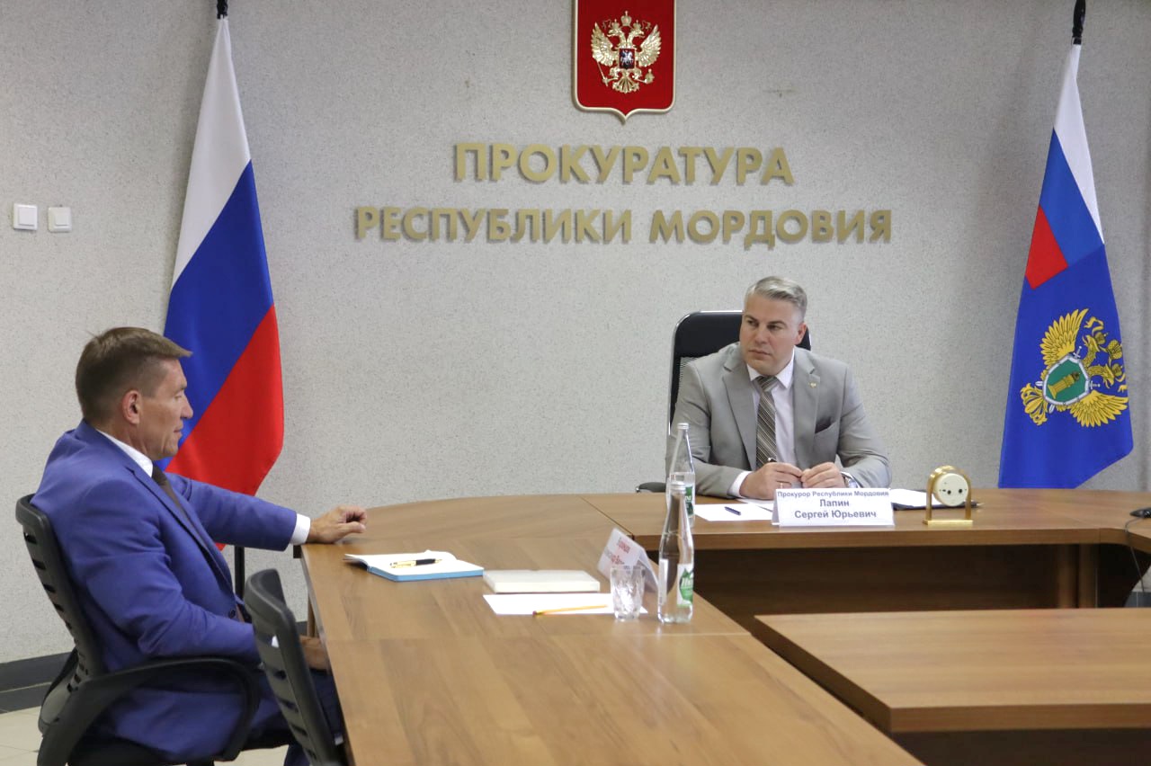 Сегодня в прокуратуре Республики Мордовия состоялась рабочая встреча прокурора республики Сергея Лапина и первого заместителя председателя Комиссии по безопасности и взаимодействию с общественными наблюдательными комиссиями (далее – ОНК) Общественной палаты Российской Федерации Александра Воронцова.