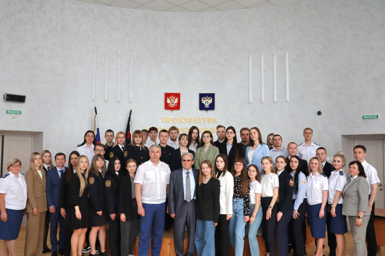 Павел Сенькин рассказал молодым людям об особенностях прокурорской деятельности, напутствовал молодежь быть верными выбранной профессии и закону.