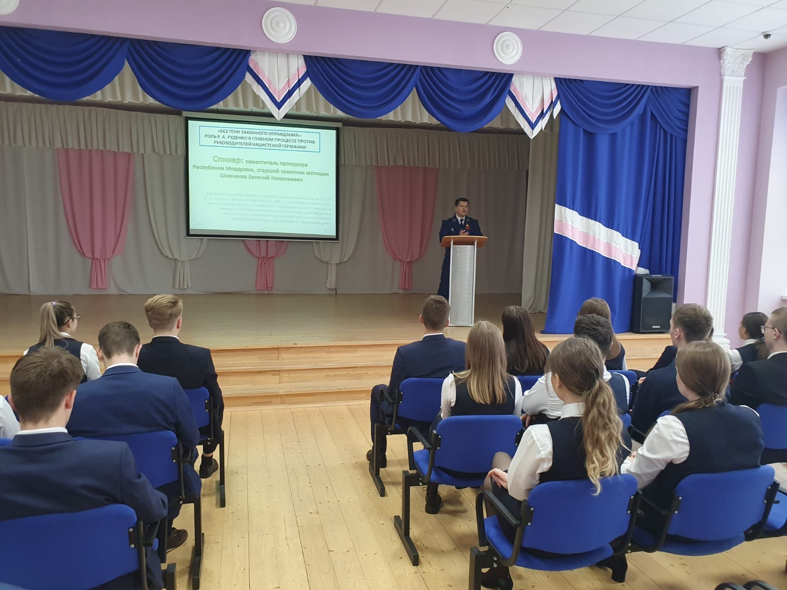 Заместитель прокурора республики Евгений Шевченко в рамках цикла внеурочных занятий «Разговоры о важном» провел встречу с учениками старших классов МОУ «Средняя общеобразовательная школа № 32» г. Саранска.