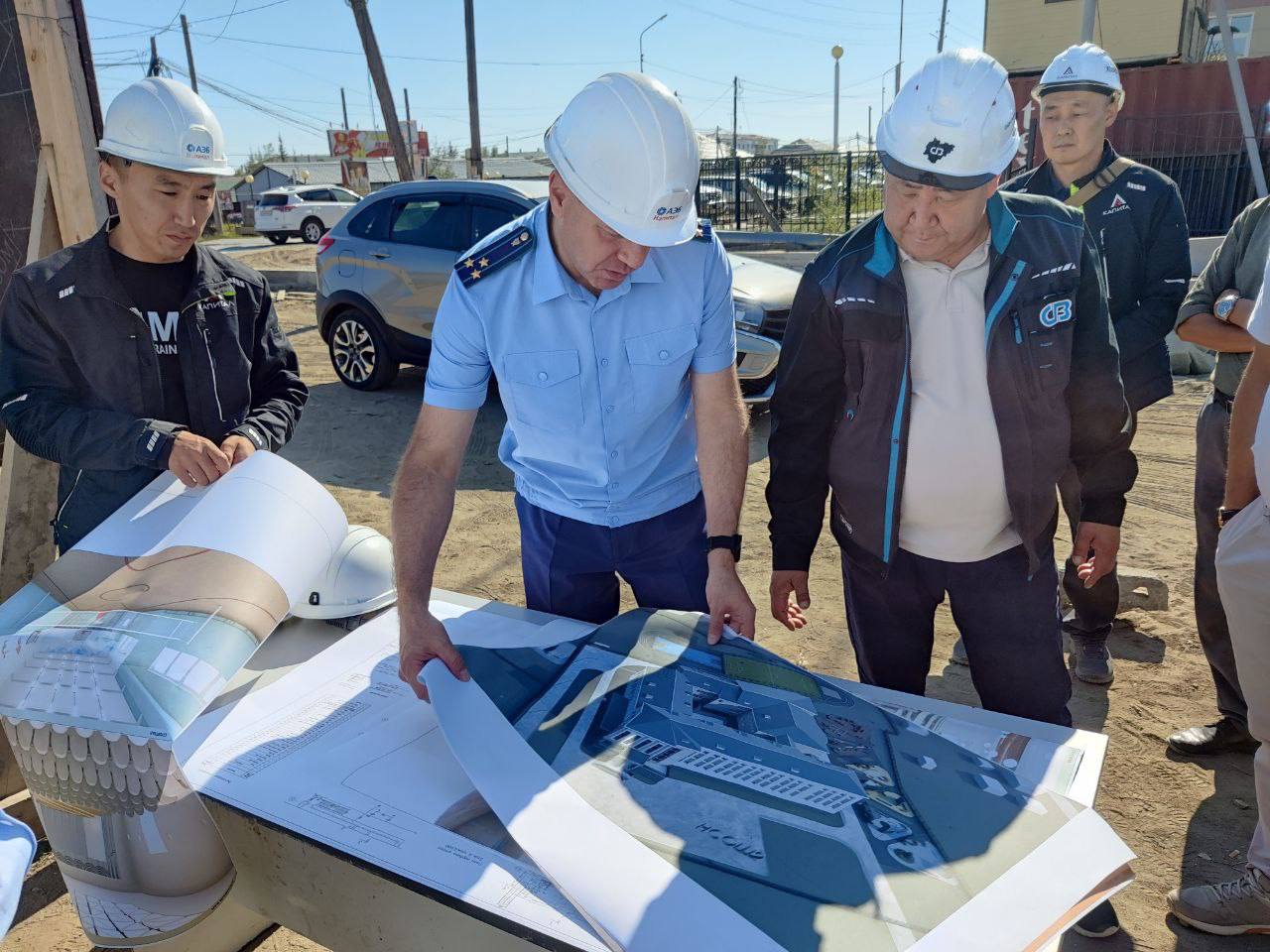 В рамках рабочей поездки в Намский район заместителем прокурора республики Алексеем Башмаковым проверен ход строительства объектов, возводимых в рамках национальных проектов «Здравоохранение», «Жилье и городская среда», «Демография».