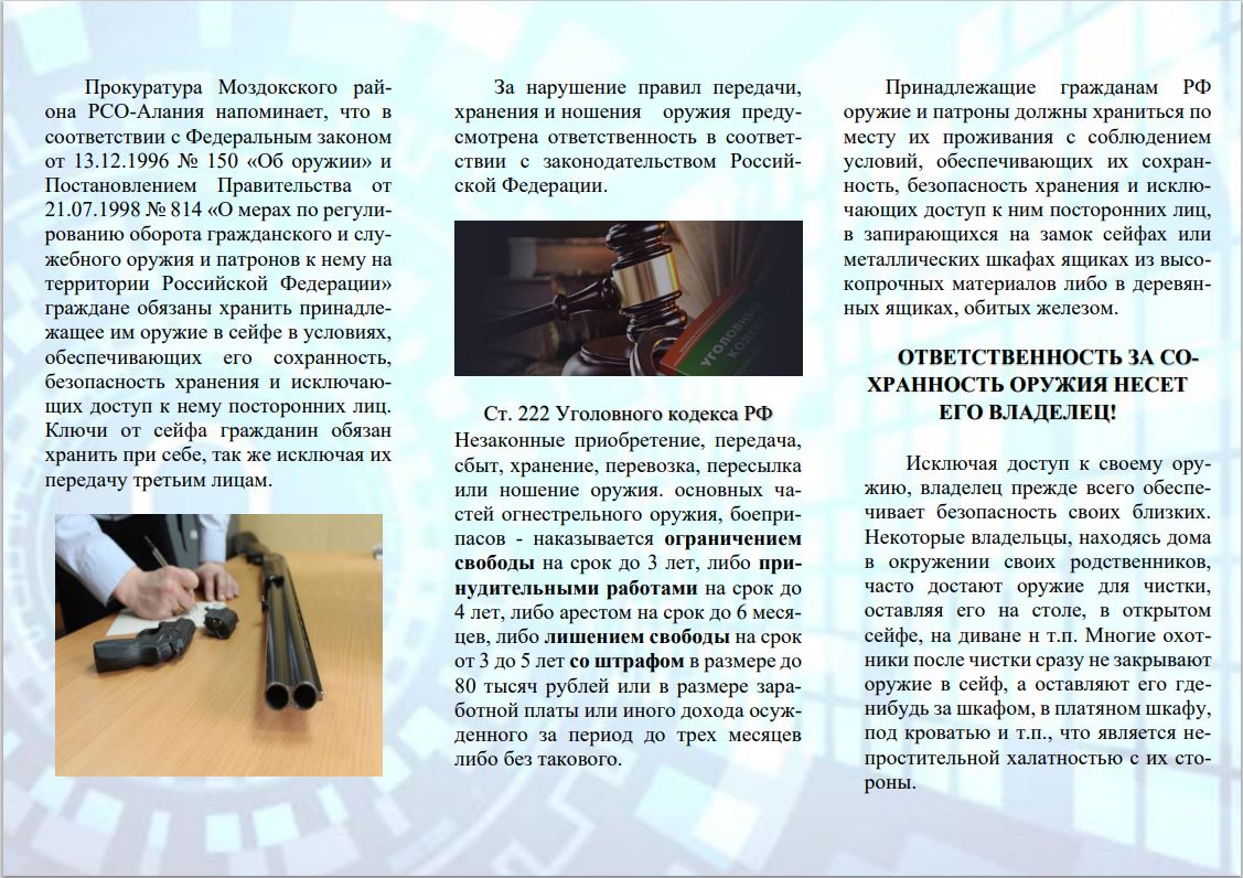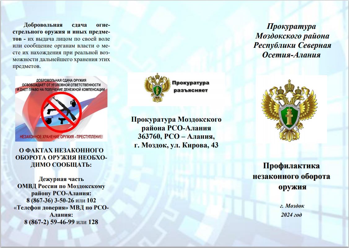 Буклет, подготовленный прокуратурой Моздокского района РСО-Алания на тему: «Профилактика незаконного оборота оружия»