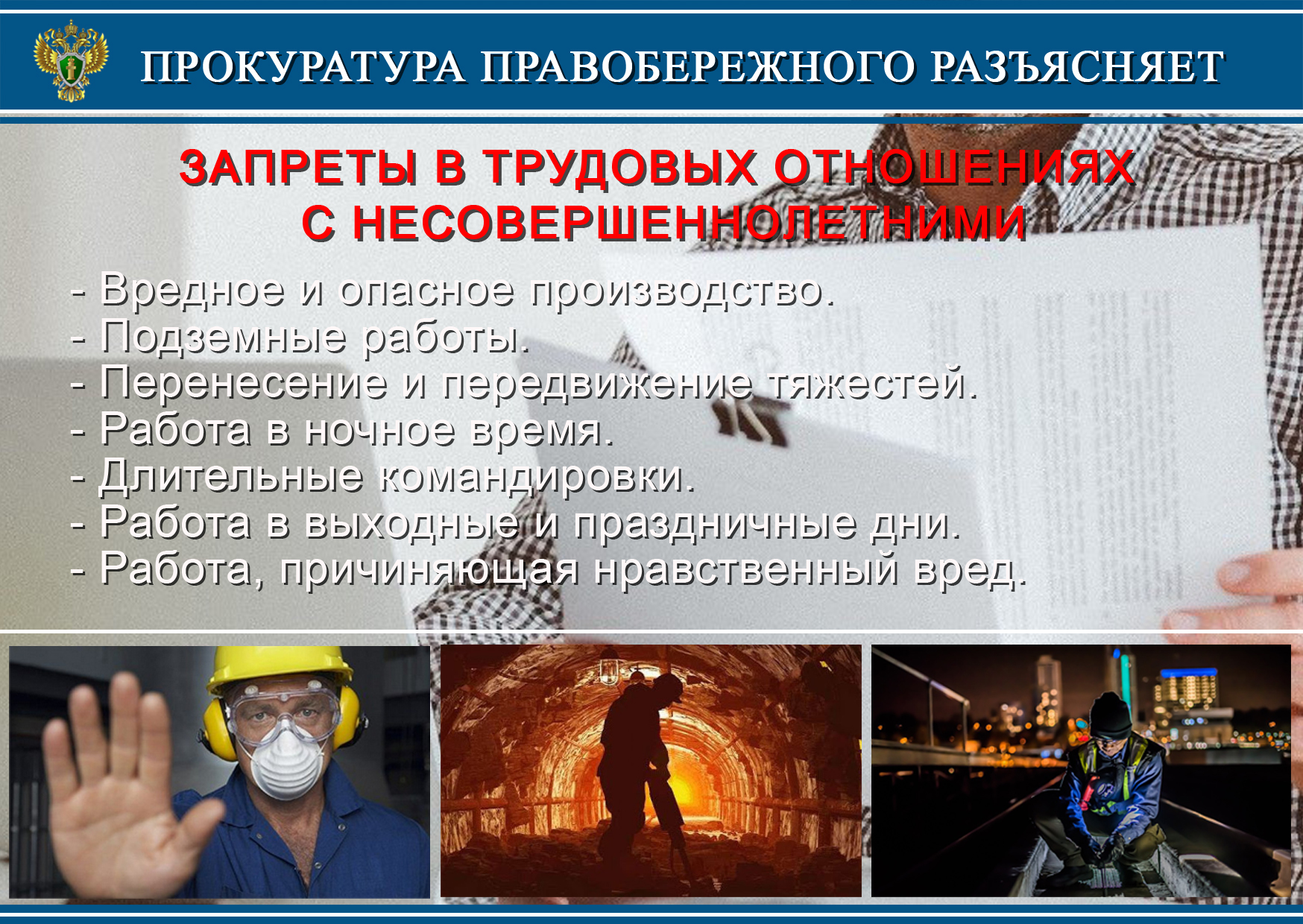 Памятка подготовленная прокуратурой Правобережного района РСО-Алания, на тему: « Запреты в трудовых отношениях с несовершеннолетними»