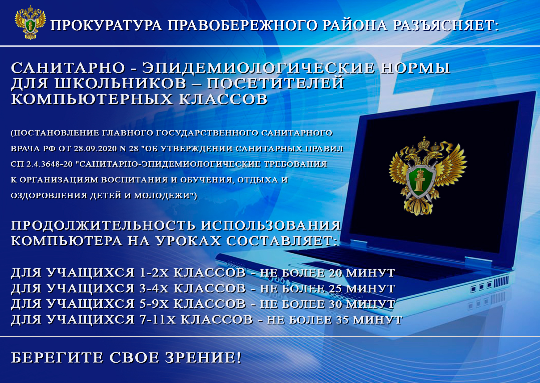 Памятка, подготовленная прокуратурой Правобережного района РСО-Алания: «Берегите зрение»