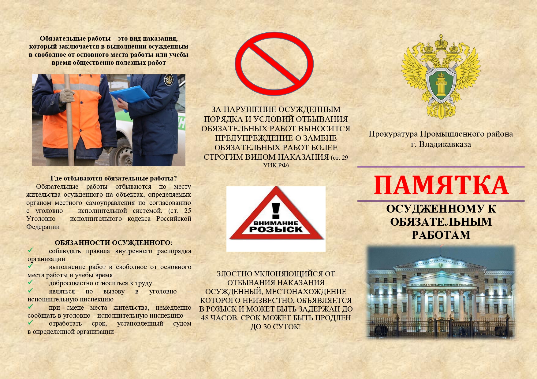 Прокуратура Промышленного района разъясняет осужденным к обязательным работам