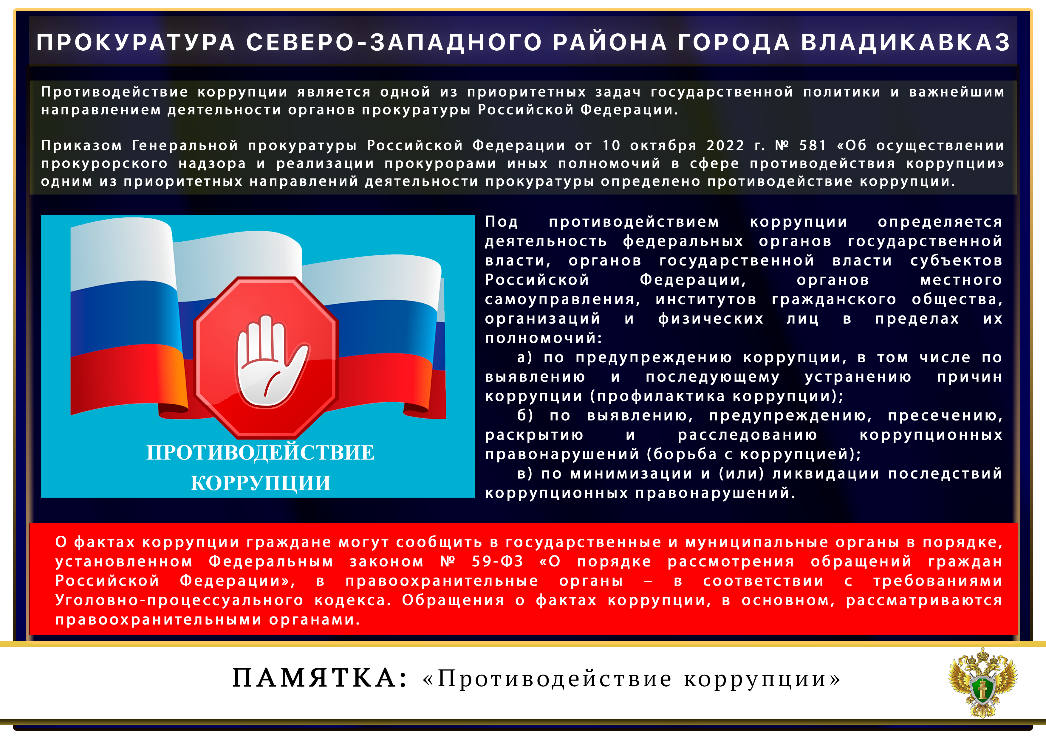 Памятка прокуратуры Северо-Западного района г. Владикавказа "Противодействие коррупции"
