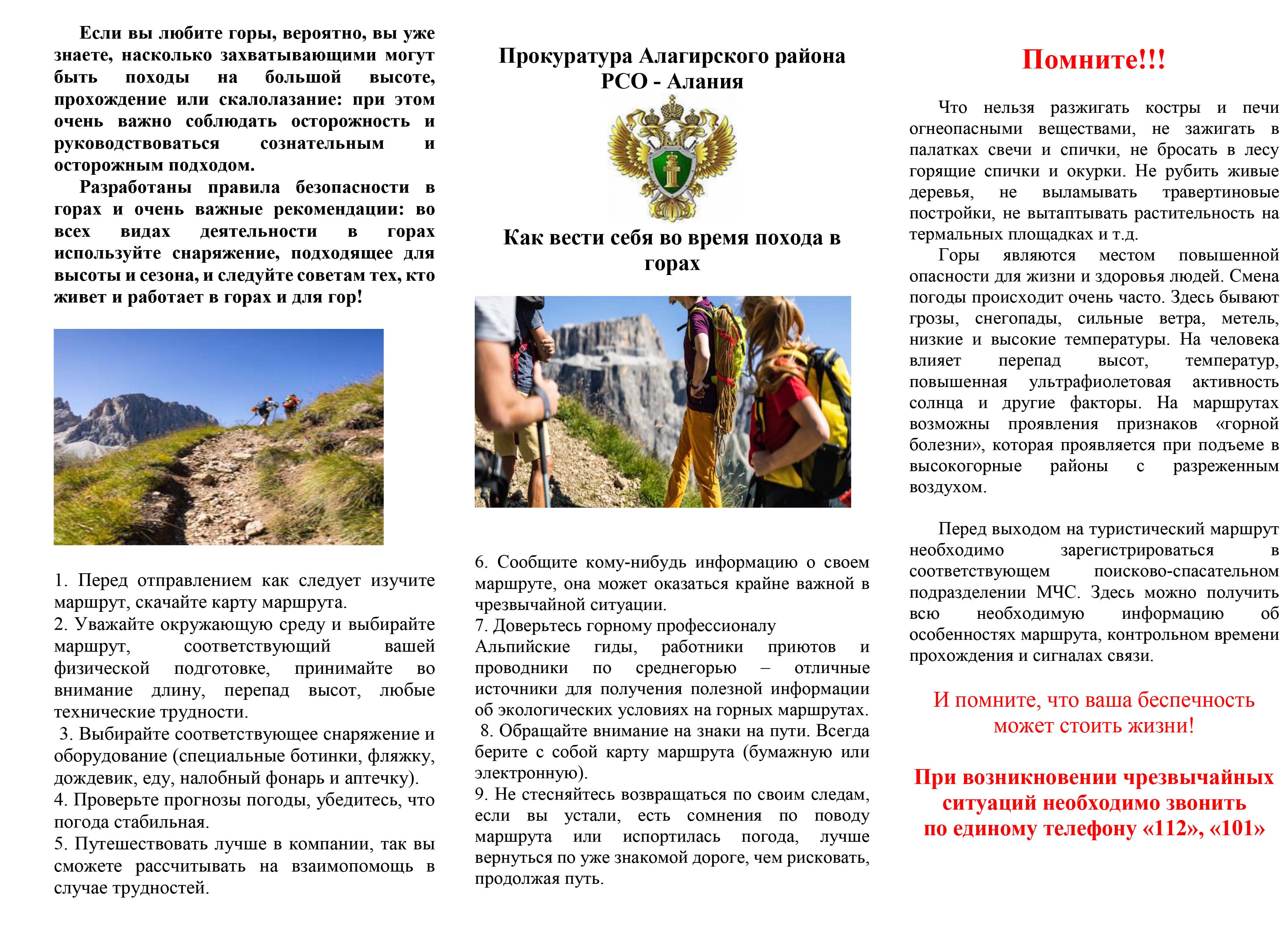Прокуратура Алагирского района РСО - Алания разъясняет: Как вести себя во время похода в горах