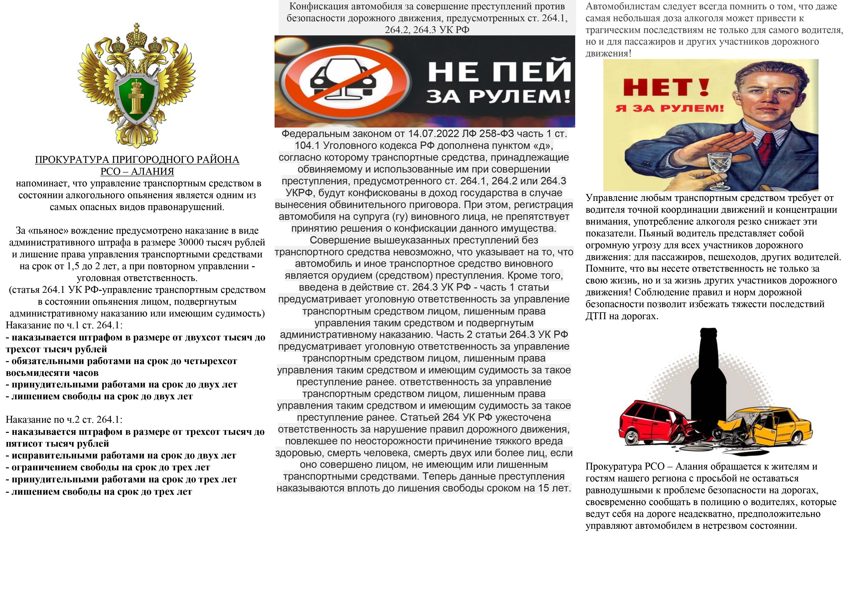 Прокуратура Пригородного района РСО - Алания разъясняет ответственность за управление транспортным средством в состоянии опьянения