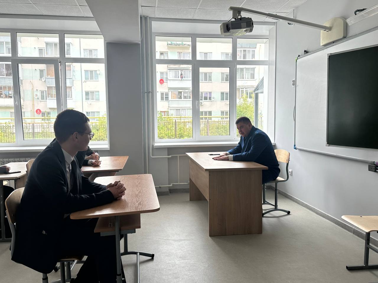 Заместитель прокурора района Эдуард Имамов и помощник прокурора Аделина Усманова посетили Круглопольскую среднюю общеобразовательную школу, где провели со старшеклассниками занятие в рамках проекта «Разговор о важном», ориентированного на формирование гражданственности и патриотизма.