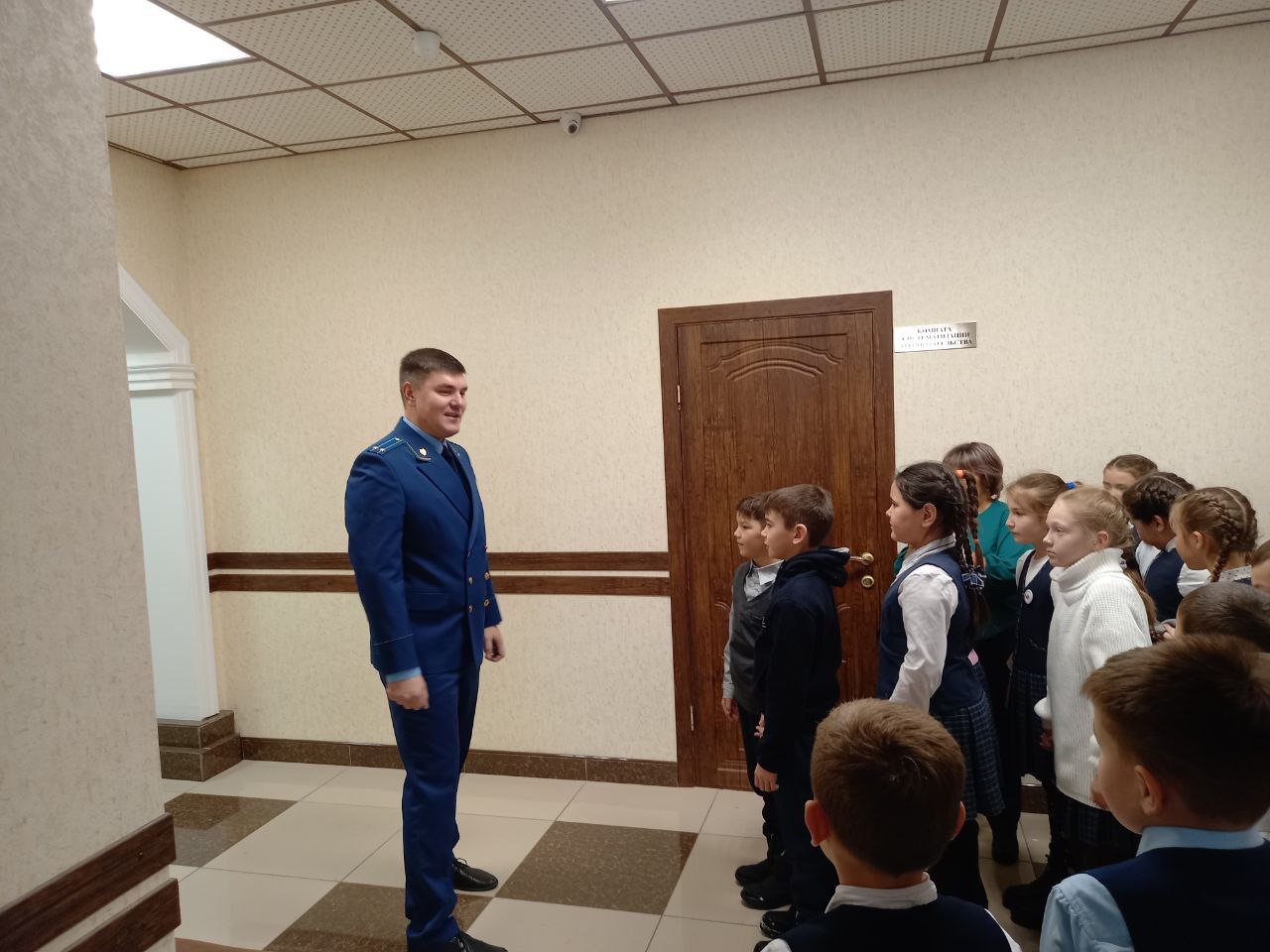 Для юных гостей была организована экскурсия по зданию прокуратуры, которую провел лично руководитель ведомства Данис Ахметзянов. Он рассказал ребятам об истории создания и развития органов прокуратуры России, об основных направлениях деятельности, а также о требованиях к кандидатам на службу.