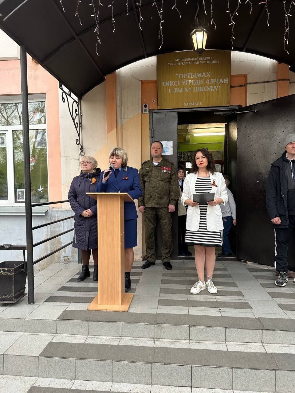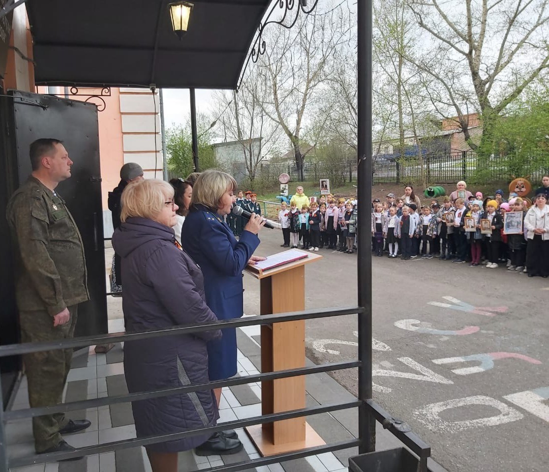 Работники прокуратуры г. Черногорска приняли участие в торжественной линейке МБОУ "Средняя общеобразовательная школа № 1" г. Черногорска, посвященной празднованию Дня Победы