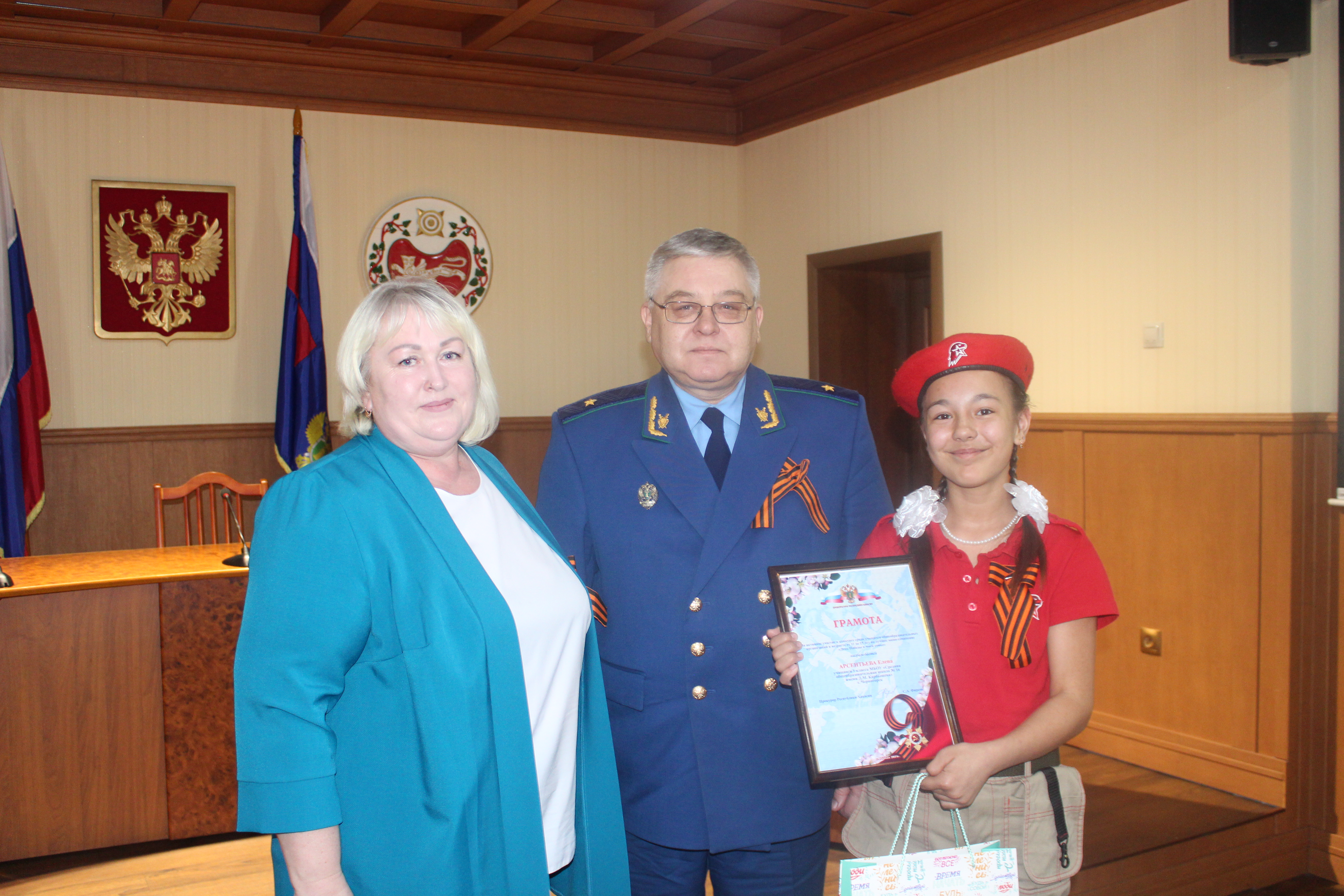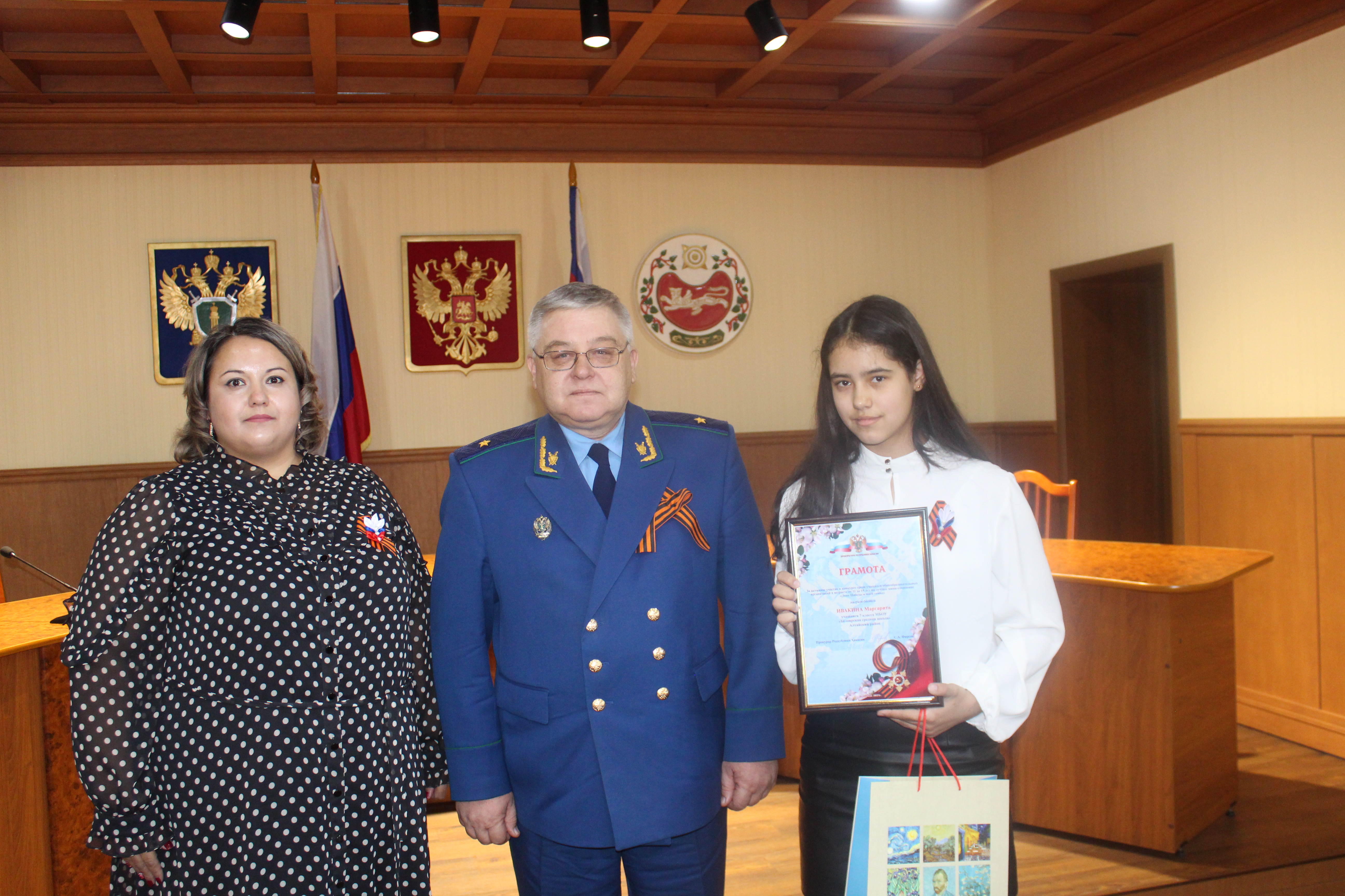 Вручение наград ребятам, чьи творческие работы были отмечены прокуратурой республики на региональном этапе конкурса, будет осуществлено по месту нахождения образовательных организаций прокурорами городов и районов республики.