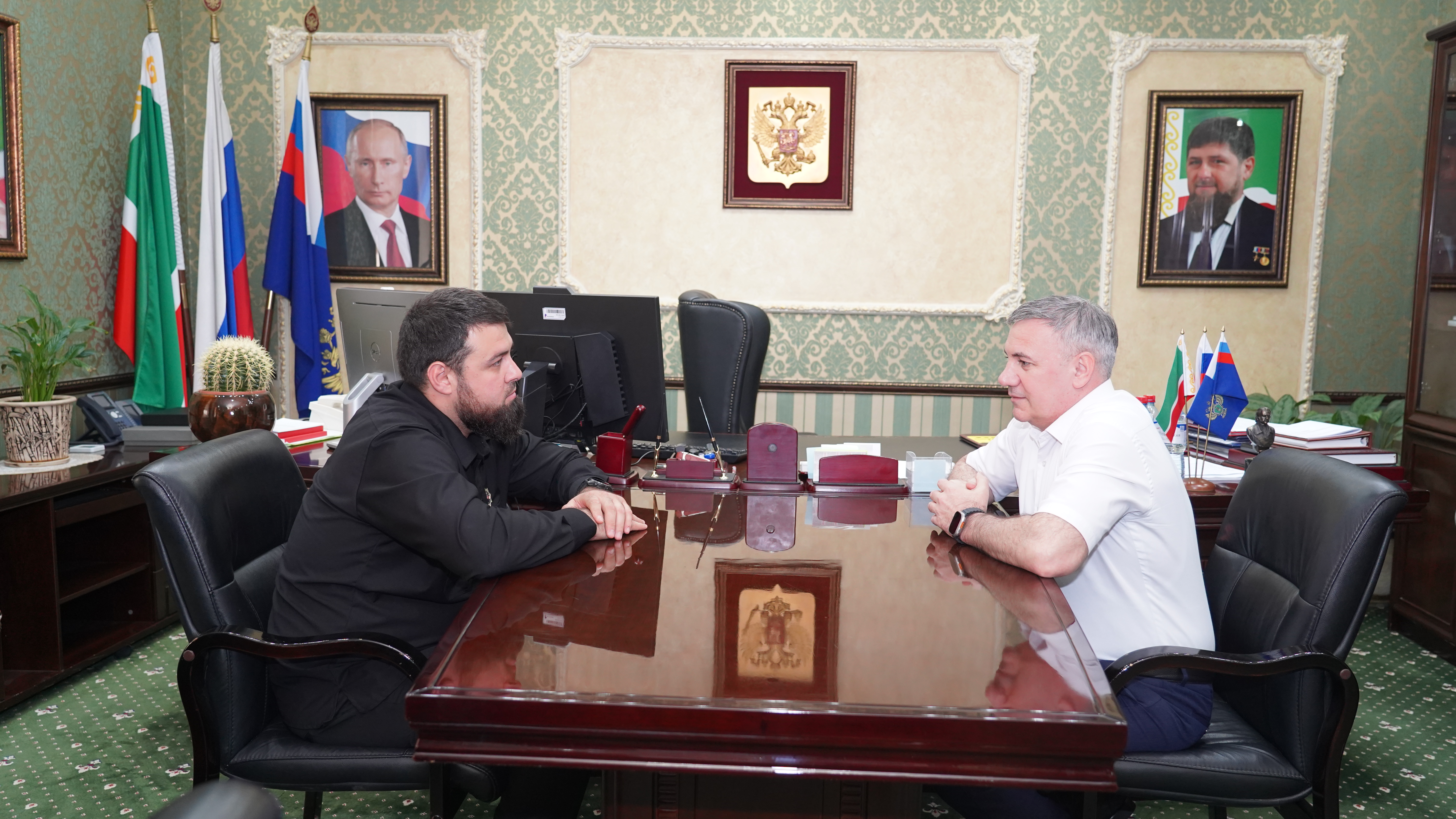 Сегодня, 20 июля 2023 года, состоялась рабочая встреча прокурора республики Арсана Адаева с руководителем филиала Государственного фонда поддержки участников специальной военной операции «Защитники Отечества» по Чеченской Республике (далее – Филиал) Алиханом Инаркаевым.