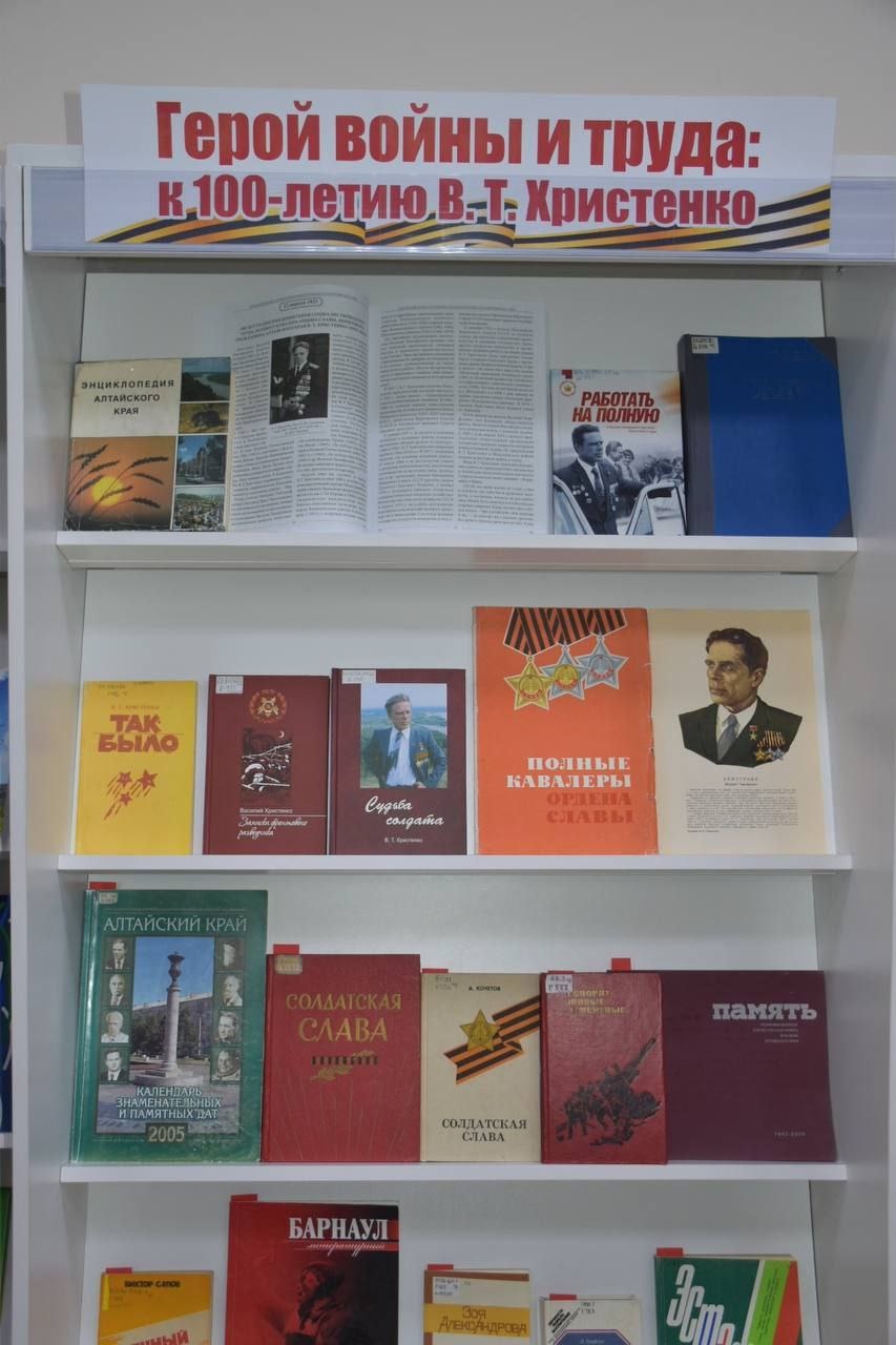 9 апреля 2025 года, помощники прокурора Алтайского края Мария Антошкина и Людмила Гузейко, ветераны ведомства Наталья Вениаминовна Донских, Алексей Аркадьевич Дудко вместе с учащимися прокурорских классов посетили выставку «Герой войны и труда: к 100-летию В.Т. Христенко», открытую в Алтайской краевой универсальной научной библиотеке им. В.Я. Шишкова.