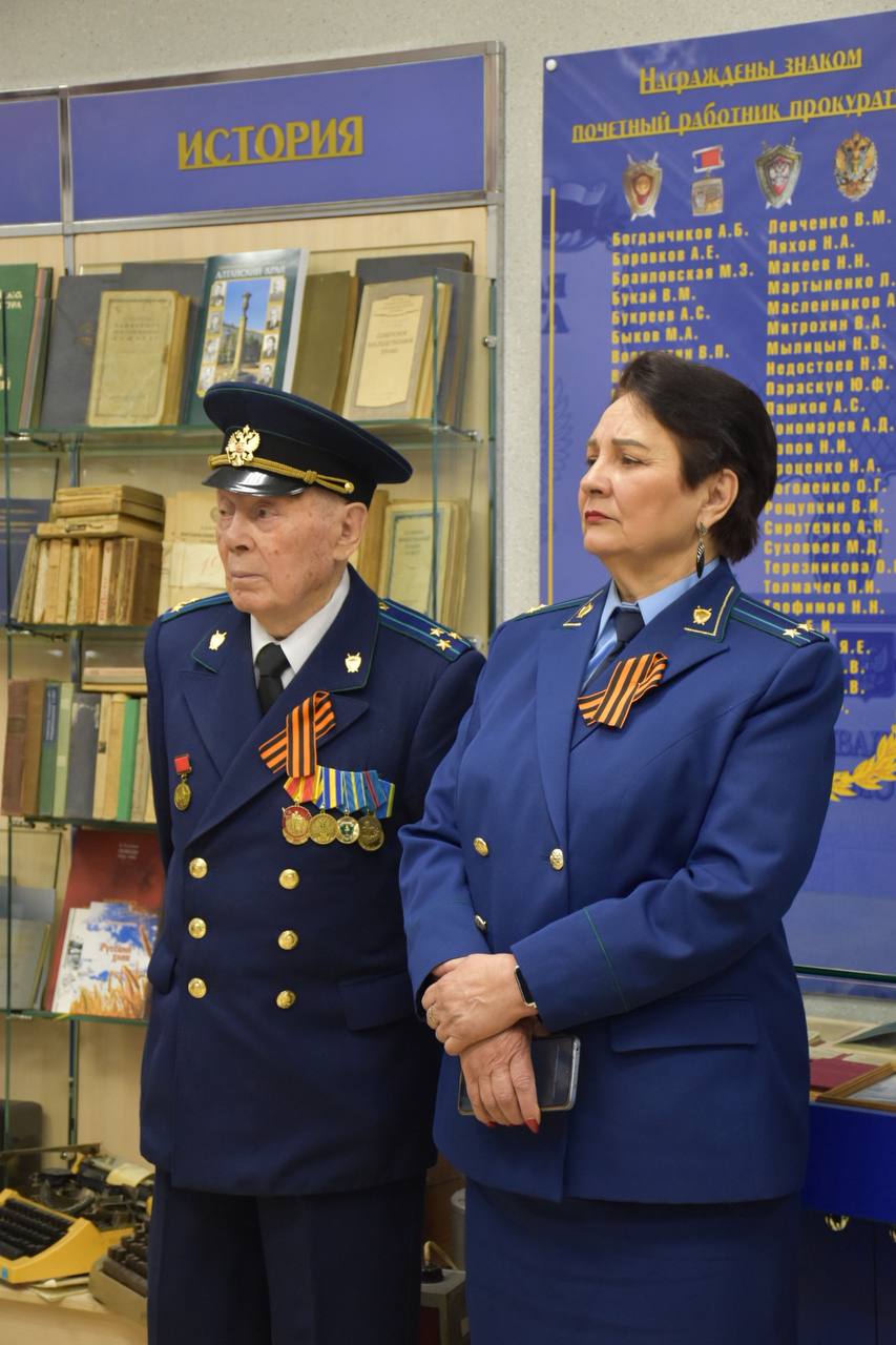 Помня и чтя историческую память, отдавая дань уважения, прошло посещение ведомственного Музея и возложение цветов: к бюсту первого Генерал-прокурора Павла Ивановича Ягужинского; к Мемориальной доске Памяти фронтовику – прокурору Алтайского края Ивану Павловичу Гущину; к Мемориальному камню, воздвигнутому в Нагорном парке краевой столицы в память об участниках Великой Отечественной войны, проходивших службу в органах прокуратуры и трудивших для Великой Победы в тылу.