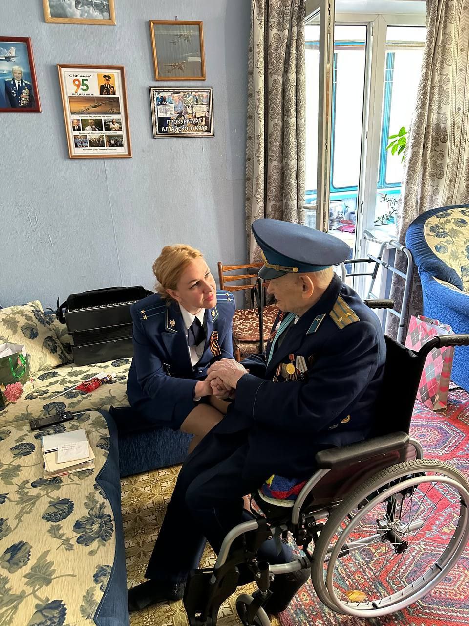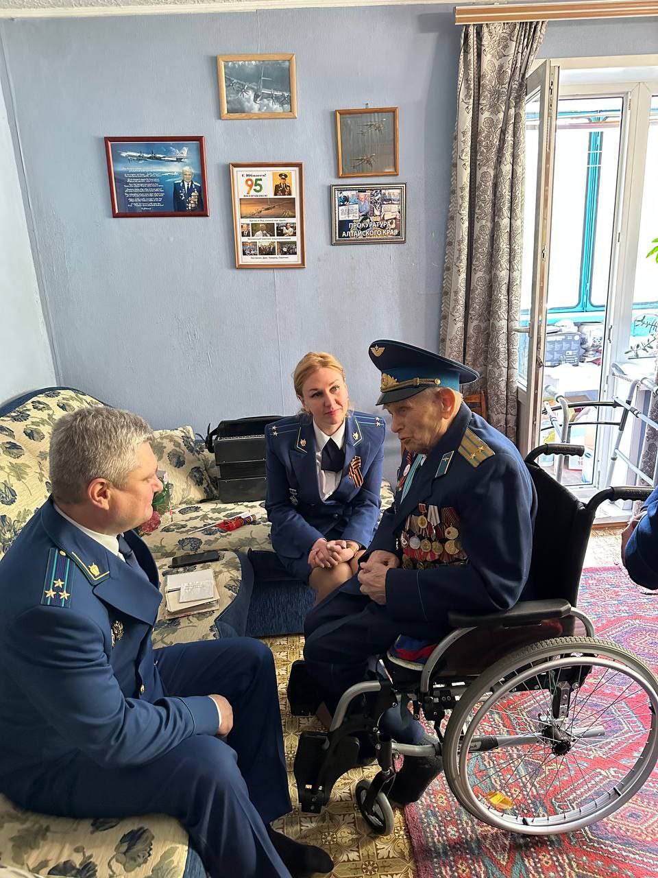 Коллектив прокуратуры Алтайского края поздравил с наступающим праздником – Днем Великой Победы ветерана Владимира Николаевича Кушпелева