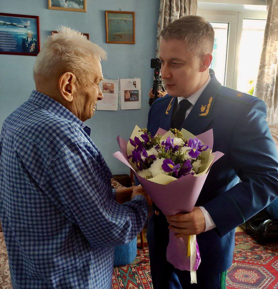Прокурор Алтайского края Антон Герман навестил на дому и поздравил с наступающим Днем защитника Отечества 97-летнего ветерана Великой Отечественной войны Владимира Николаевича Кушпелева.