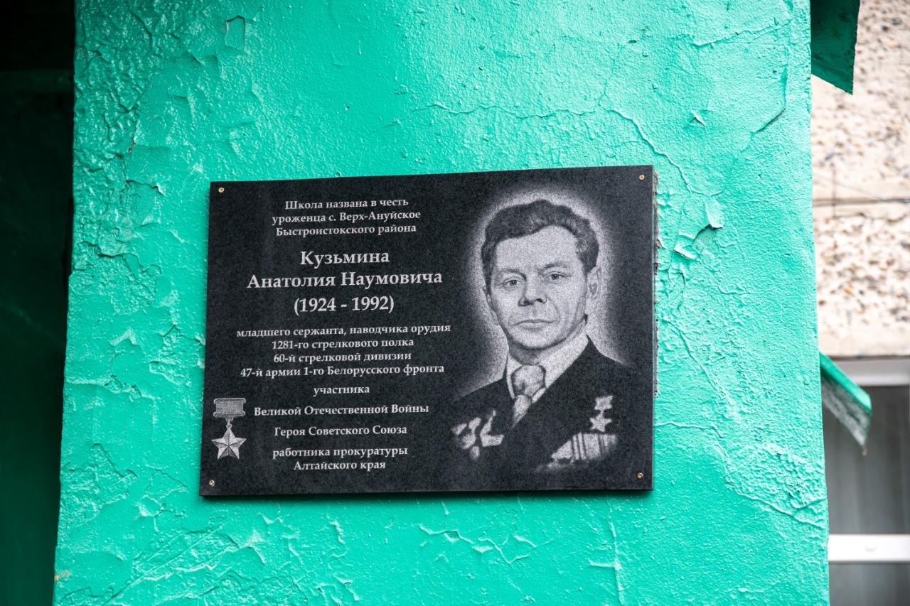 В Быстроистокском районе открыт Памятный знак о присвоении МБОУ "Верх-Ануйская ОСШ" имени Героя Советского Союза Анатолия Наумовича Кузьмина, проходившего службу в органах прокуратуры Алтайского края