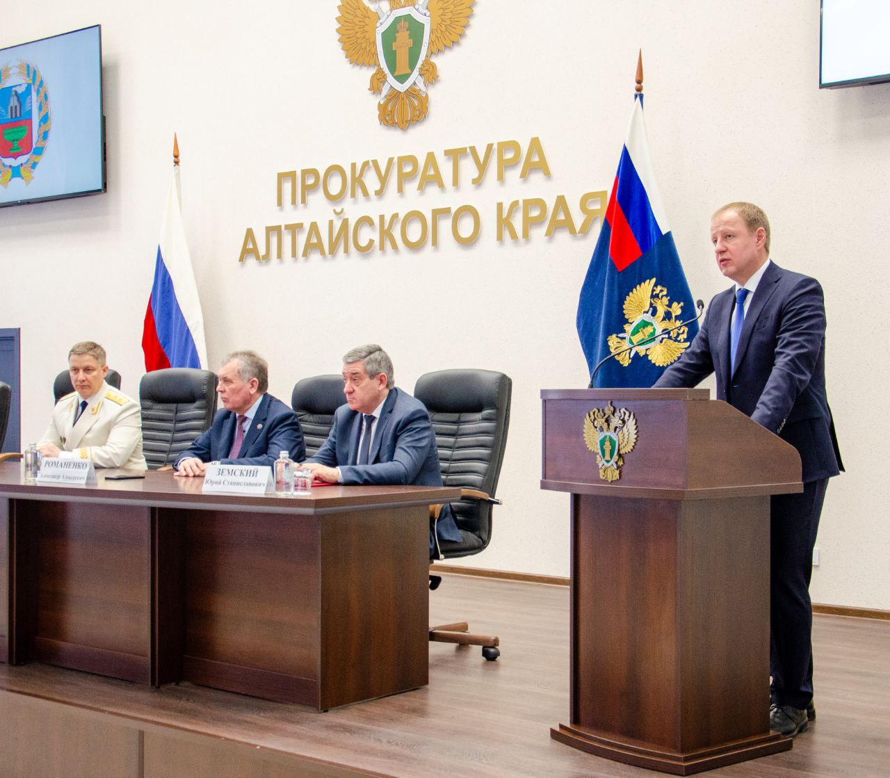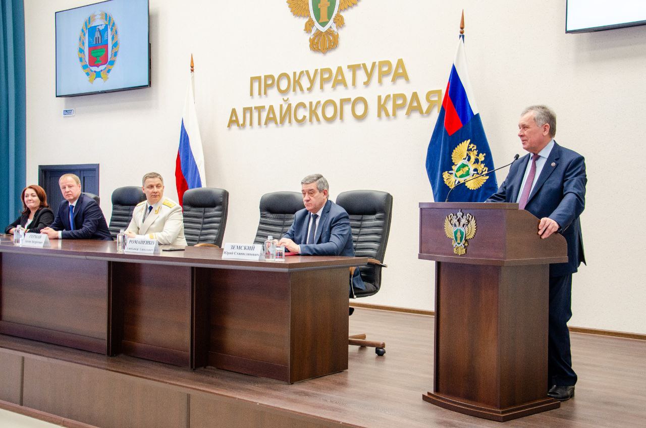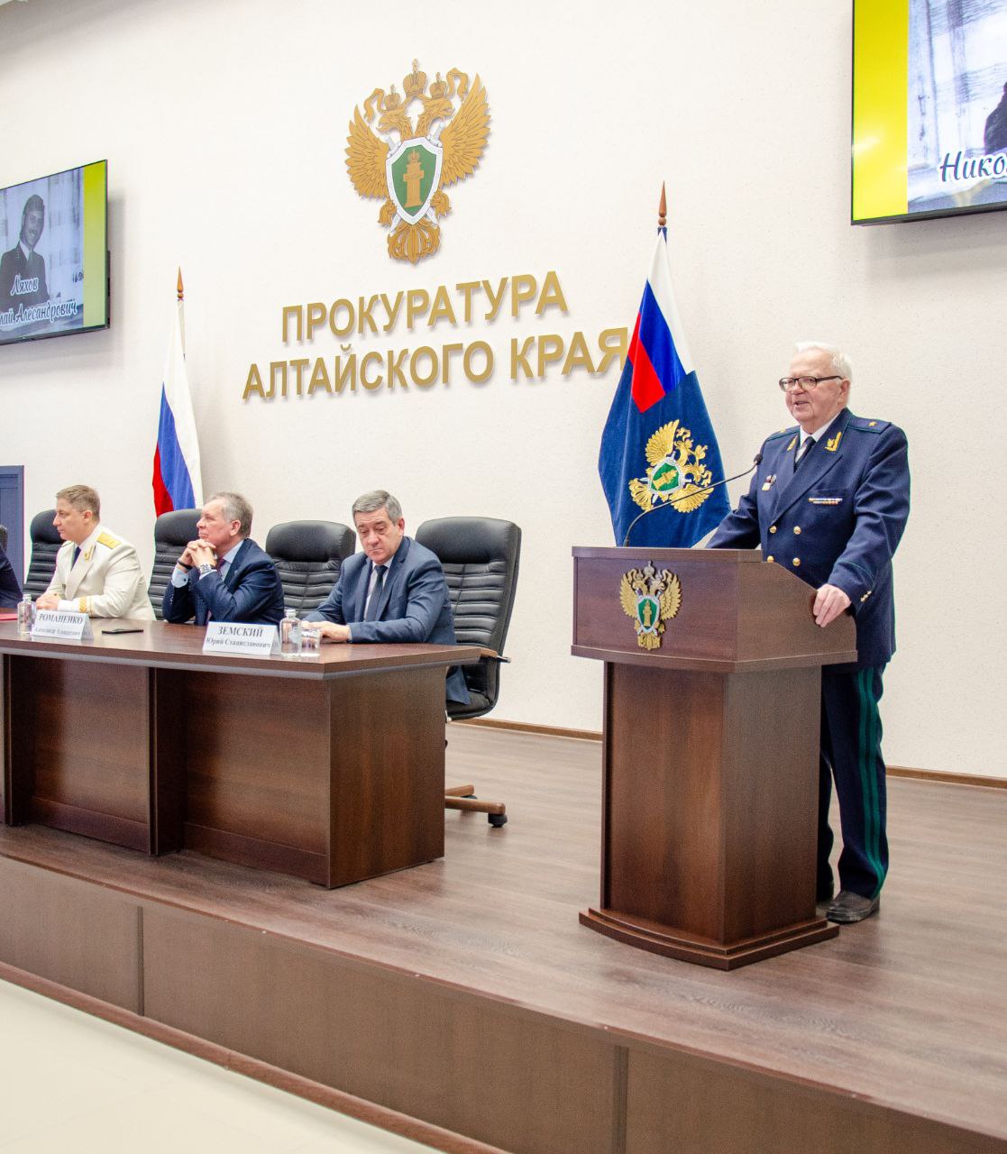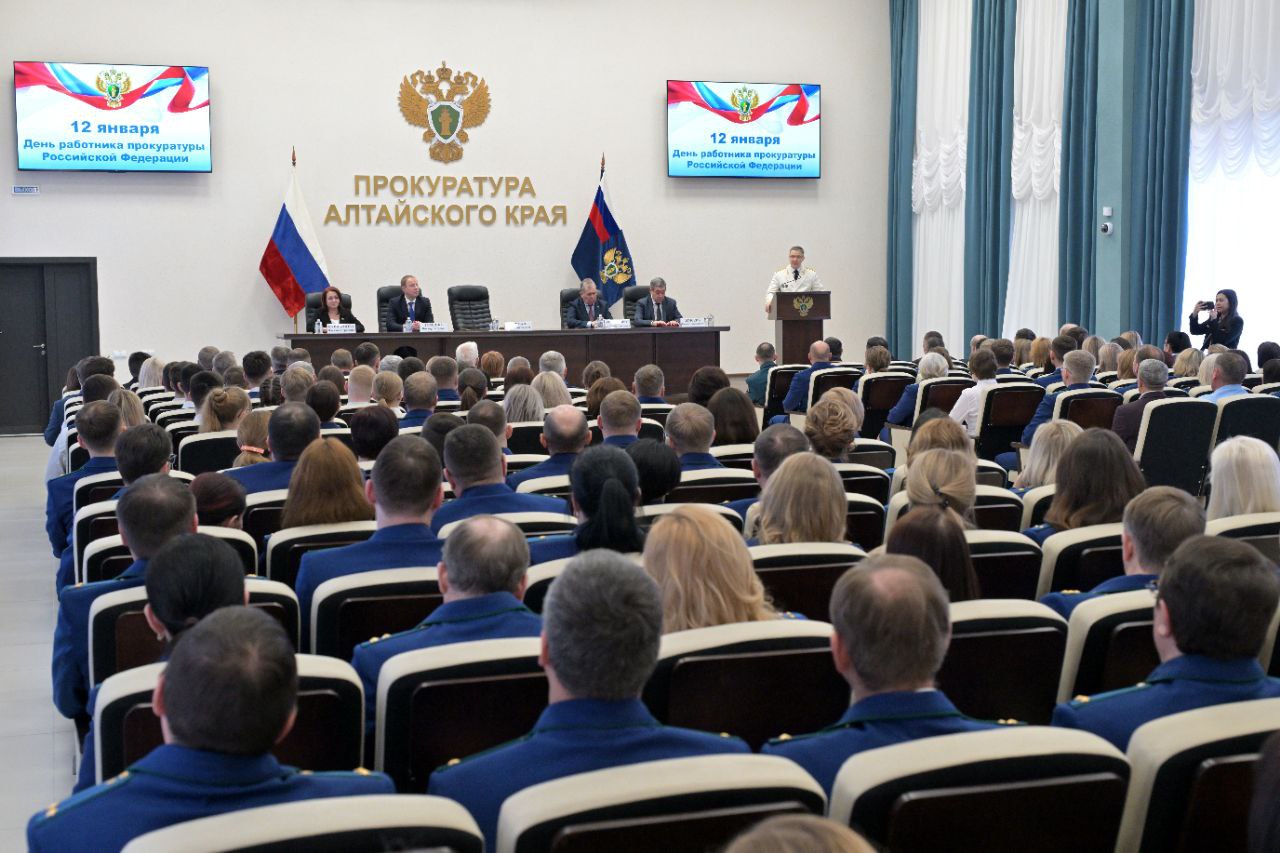 В прокуратуре Алтайского края прошло торжественное мероприятие, посвященное празднованию 303-й годовщины прокуратуры России. В нем приняли участие Губернатор Алтайского края Виктор Томенко, председатель Алтайского краевого Законодательного Собрания Александр Романенко, Главный федеральный инспектор по Алтайскому краю Юрий Земский, сенаторы Российской Федерации Наталья Кувшинова и Виктор Зобнев, руководители прокуратуры и правоохранительных органов региона и судов, сотрудники аппарата и горрайспецпрокуратур, ветераны ведомства.