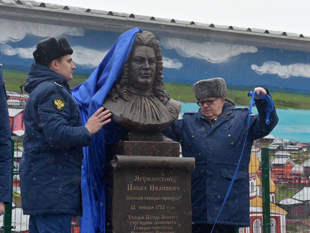 Отдавая дань памяти, чтя преемственность поколений и проводимое государственно-правовое воспитание, заместитель председателя Алтайского регионального отделения Общероссийской общественной организации ветеранов и пенсионеров прокуратуры Владимир Андреевич Митрохин и молодой специалист Виктор Коршунов открыли бюст первому Генерал-прокурору Павлу Ивановичу Ягужинскому.
