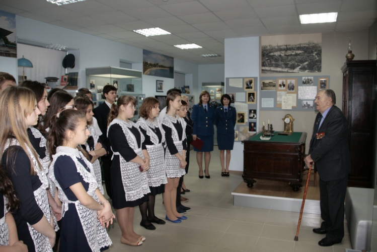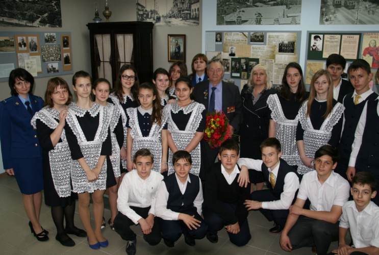 В целях историко-патриотического воспитания молодого поколения 25.04.2013 года в музее истории органов прокуратуры Краснодарского края состоялась встреча учащихся 7 «в» класса лицея № 48 им. А.В. Суворова города Краснодара с ветераном прокуратуры, участником Великой Отечественной войны Захаренко Игорем Николаевичем. Игорь Николаевич принимал участие в боевых действиях на Западном, Северо-Западном и Южном фронтах, участвовал в Курской битве, в обороне Москвы, Ленинграда, во взятии Берлина, освобождал Варшаву и Краснодар. В органах прокуратуры края проработал более 22 лет, пройдя путь от помощника прокурора Первомайского района города Краснодара до прокурора отдела по надзору за исполнением законов о федеральной безопасности прокуратуры Краснодарского края. За военные подвиги и трудовые заслуги награжден многочисленными наградами, среди которых: ордена Красной Звезды, Красного Знамени, Отечественной войны I и II степени; медали «За оборону Москвы», «За оборону Кавказа», «За Победу над Германией в Великой Отечественной войне 1941-1945 гг.», «За взятие Берлина», «За освобождение Варшавы», «За доблестный труд», «За оборону Ленинграда», «290 лет прокуратуре России»; знак отличия «За верность закону» I степени; трудовые награды - «Ветеран труда», «Ветеран прокуратуры». Ему присвоено почетное звание «Заслуженный работник прокуратуры Российской Федерации». Работники отдела кадров прокуратуры края ознакомили школьников с выставочной экспозицией музея, этапами становления и развития прокуратуры на Кубани. Игорь Николаевич рассказал юному поколению о героизме и подвигах Советских воинов, защищавших Родину от фашистских захватчиков. В ходе беседы ребята узнали для себя много нового и интересного, активно задавали вопросы. Поблагодарив Игоря Николаевича за увлекательный рассказ, учащиеся от всей души пожелали ему активного долголетия, крепкого здоровья и благополучия, вручили фрукты и цветы.