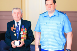 По поручению прокурора края первый заместитель прокурора края Владислав Малкин в прокуратуре Ленинградского района в торжественной обстановке вручил Фёдору Ивановичу специально изготовленную к этому событию памятную медаль органов прокуратуры Краснодарского края.