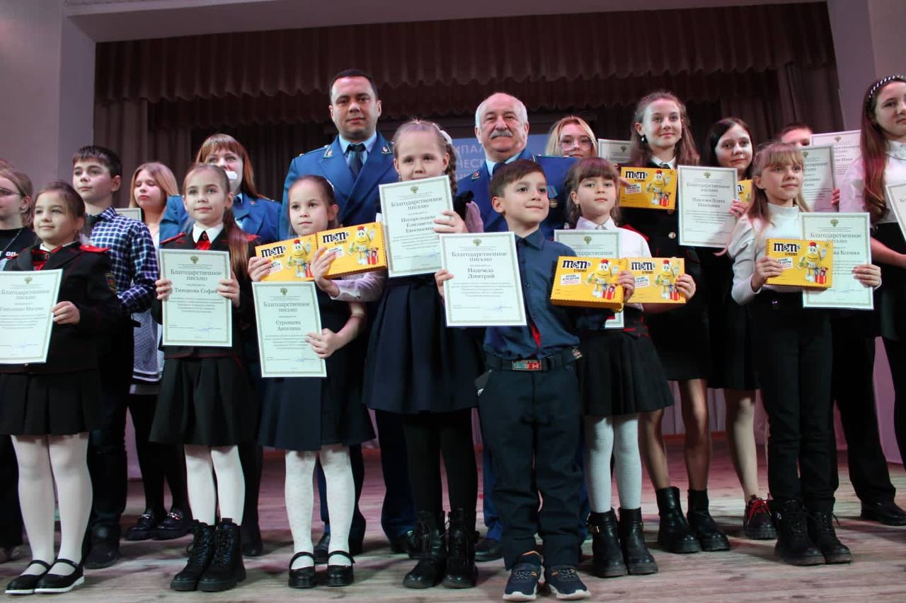 Прокурор района Вадим Кузнецов совместно с представителем Совета краснодарского регионального отделения Общероссийской общественной организации ветеранов и пенсионеров прокуратуры России Юрием Владимировичем Чакряном провели награждение детей - участников конкурса.