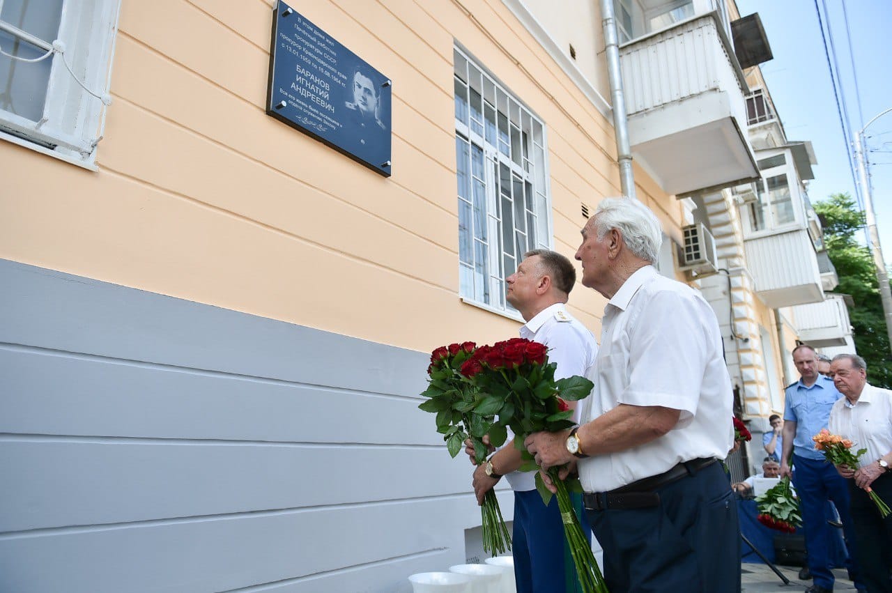 Состоялось открытие мемориальной доски, посвященной Почётному работнику прокуратуры, прокурору Краснодарского края с 1959 по 1964 г.г., государственному советнику юстиции 2 класса Игнатию Андреевичу Баранову