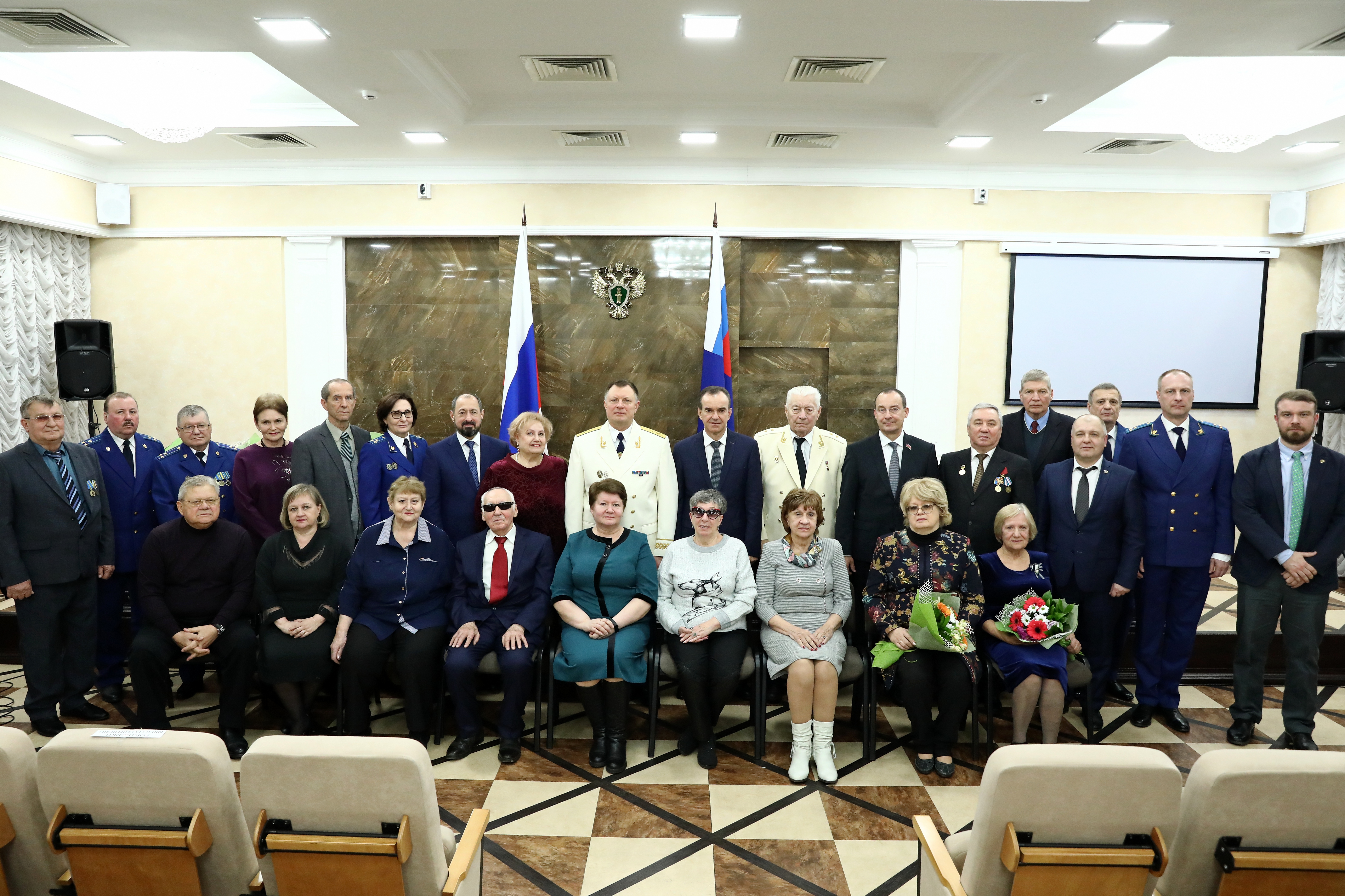 Губернатор Краснодарского края Вениамин Кондратьев поздравил работников органов прокуратуры края, подчеркнул важность взаимодействия администрации края и прокуратуры, поблагодарил за обеспечение социальной и экономической стабильности в крае. За многолетний добросовестный труд, профессиональное мастерство, существенный вклад в укрепление законности и правопорядка в крае и в связи с празднованием Дня работника прокуратуры Российской Федерации Губернатор вручил работникам и ветеранам прокуратуры края почетные грамоты администрации Краснодарского края ценные подарки и объявил благодарности.