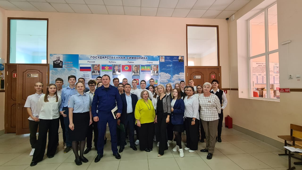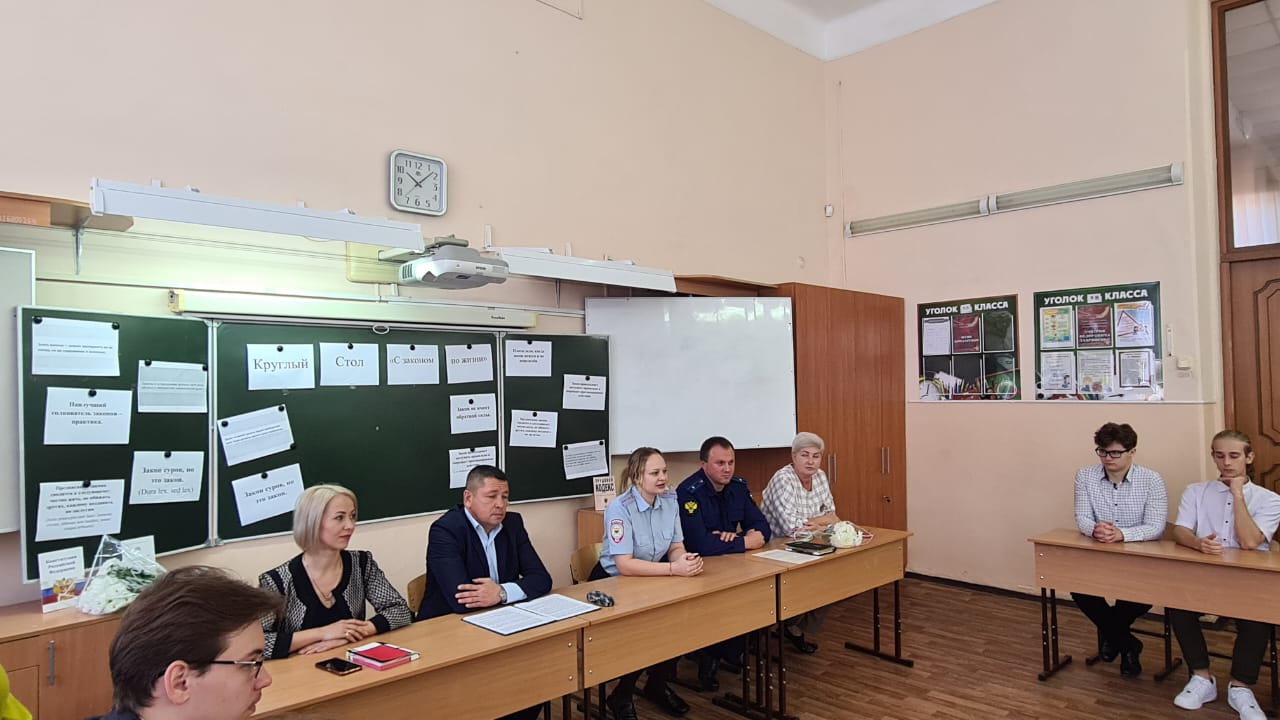 Лабинская межрайонная прокуратура совместно с работниками подразделения по делам несовершеннолетних районного отдела полиции, администрации муниципального образования Лабинский район и образовательного учреждения с учениками старших классов МОБУ СОШ № 4 имени участника Великой Отечественной войны Вареласа В.Г. провели заседание круглого стола «с законом по жизни».