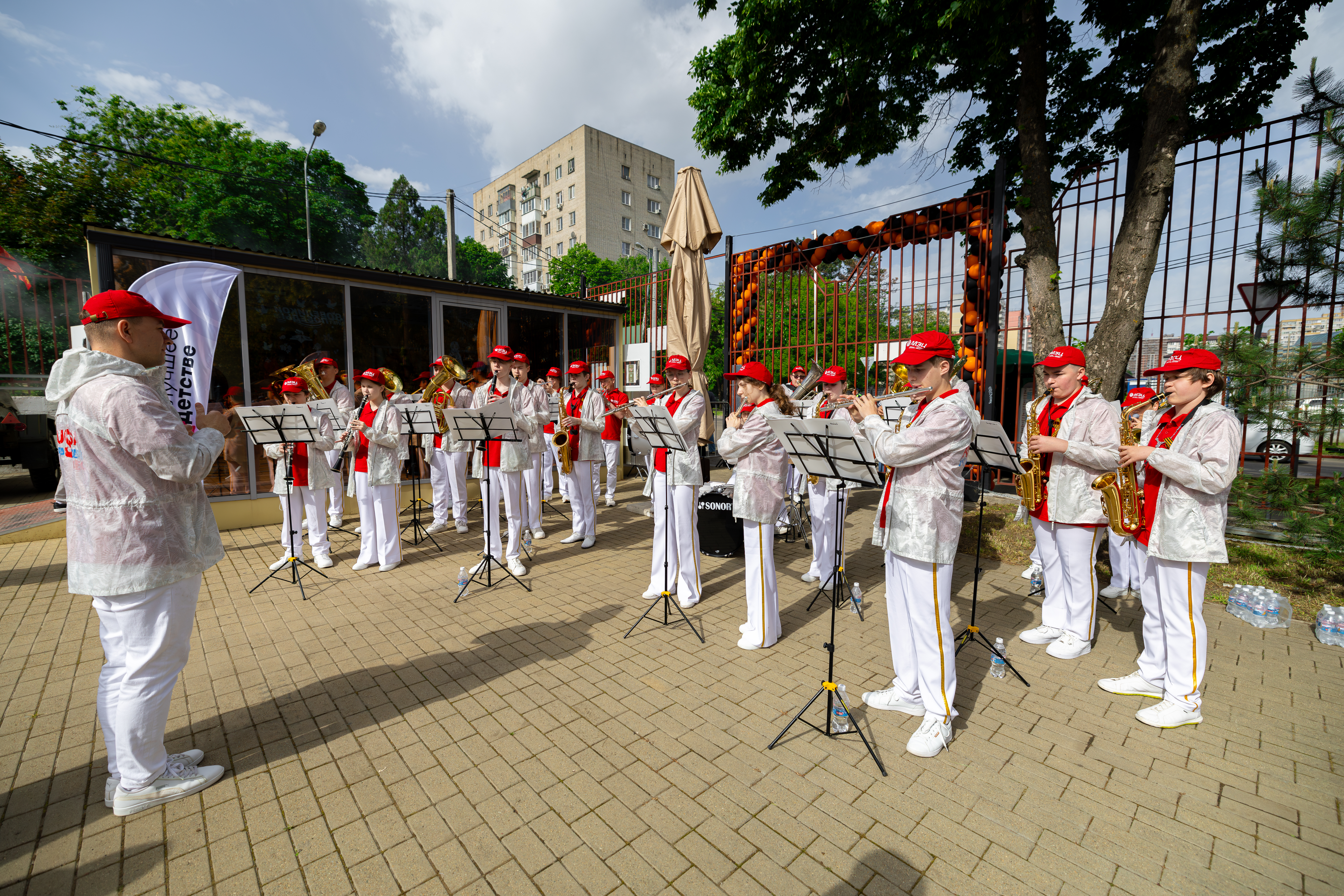 Особую атмосферу происходящему дополняли выступления участников коллектива межшкольного эстетического центра. Участники Краснодарской краевой поисковой военно-патриотической общественной организации «Черноморский фронт» на футбольном поле провели реконструкцию одного из последних боев Великой Отечественной войны. Все желающие могли отведать каши из установленной на стадионе «Полевой кухни».