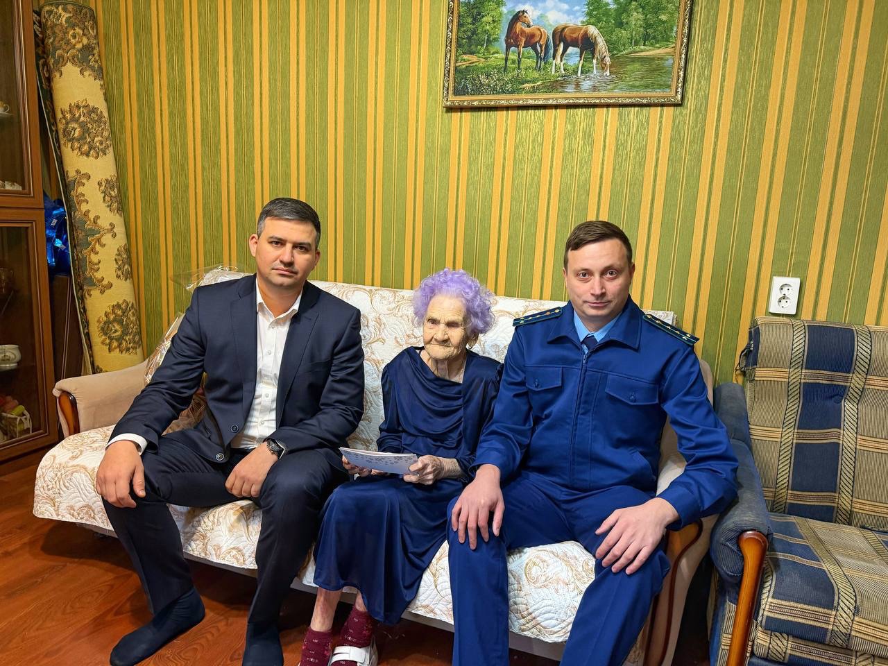 Заместитель прокурора Западного административного округа города Краснодара совместно с главой округа поздравили с наступающим Новым годом участницу Великой Отечественной войны, Почетного жителя нашего города Анну Филипповну Петрочук, которая не так давно
