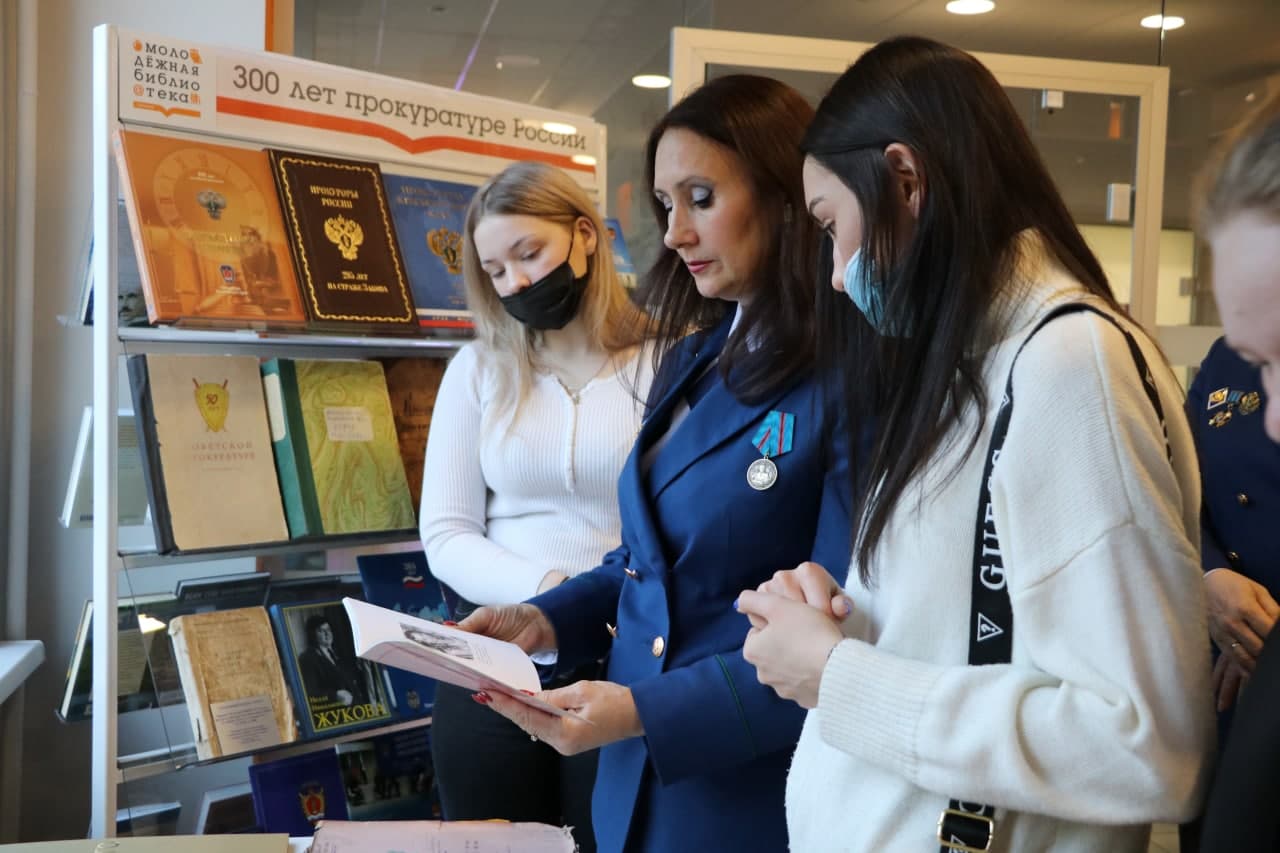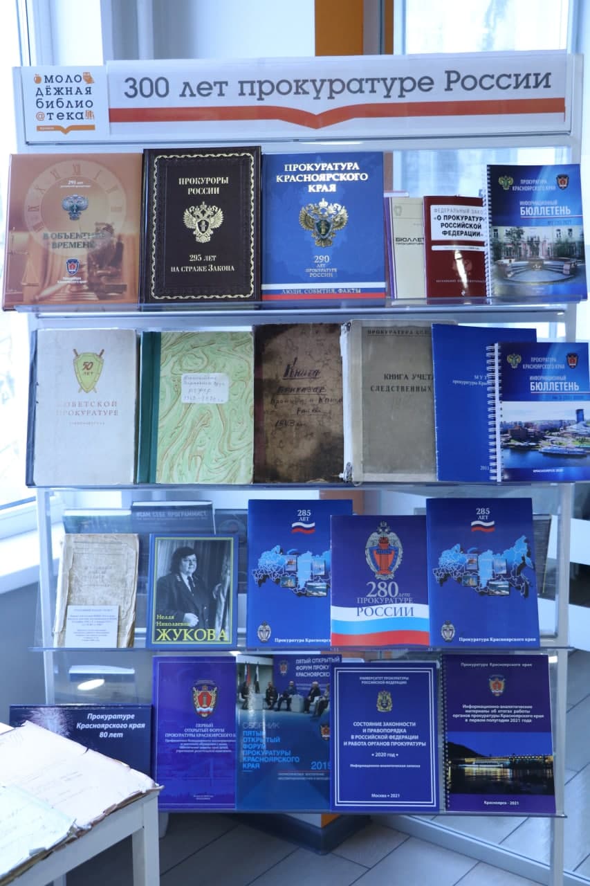 Представители прокуратуры края встретились со студентами ЧПОУ «Межрегиональный правовой колледж» в Красноярской краевой молодежной библиотеке, где была организована выставка, посвященная 300-летию с даты образования прокуратуры России, представлены экспонаты из музея прокуратуры края, книжные издания, нормативная база советских времен, награды и форменное обмундирование ветеранов прокуратуры, участников Великой Отечественной войны 1941-1945 годов, удостоверения прокурорских работников 1940-х годов и много других интересных предметов.
