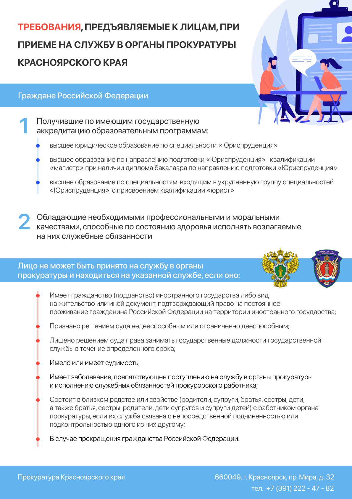 ❗️ Условия и порядок приема на службу в органы прокуратуры Красноярского края, требования к кандидатам для зачисления в кадровый резерв для замещения вакантных должностей прокурорских работников
