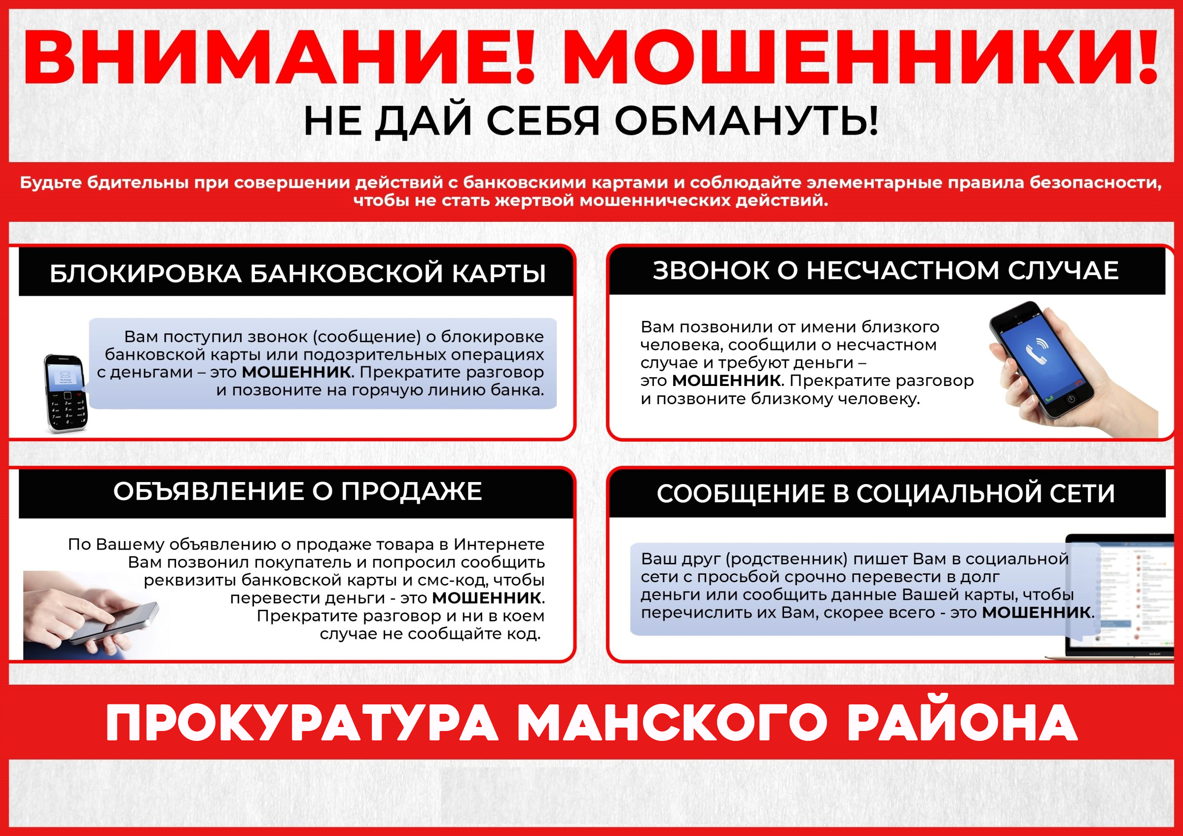Листовка прокуратуры Манского района о том, как не стать жертвой кибер-мошенника