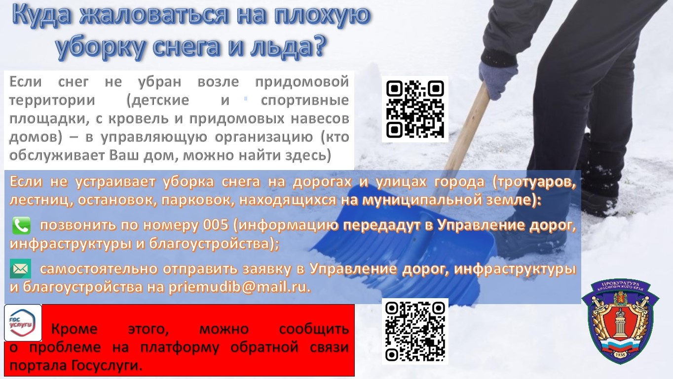Отдел по рассмотрению обращений и приему граждан представляет вниманию памятку по вопросам подачи обращений о некачественной уборке снега и льда.