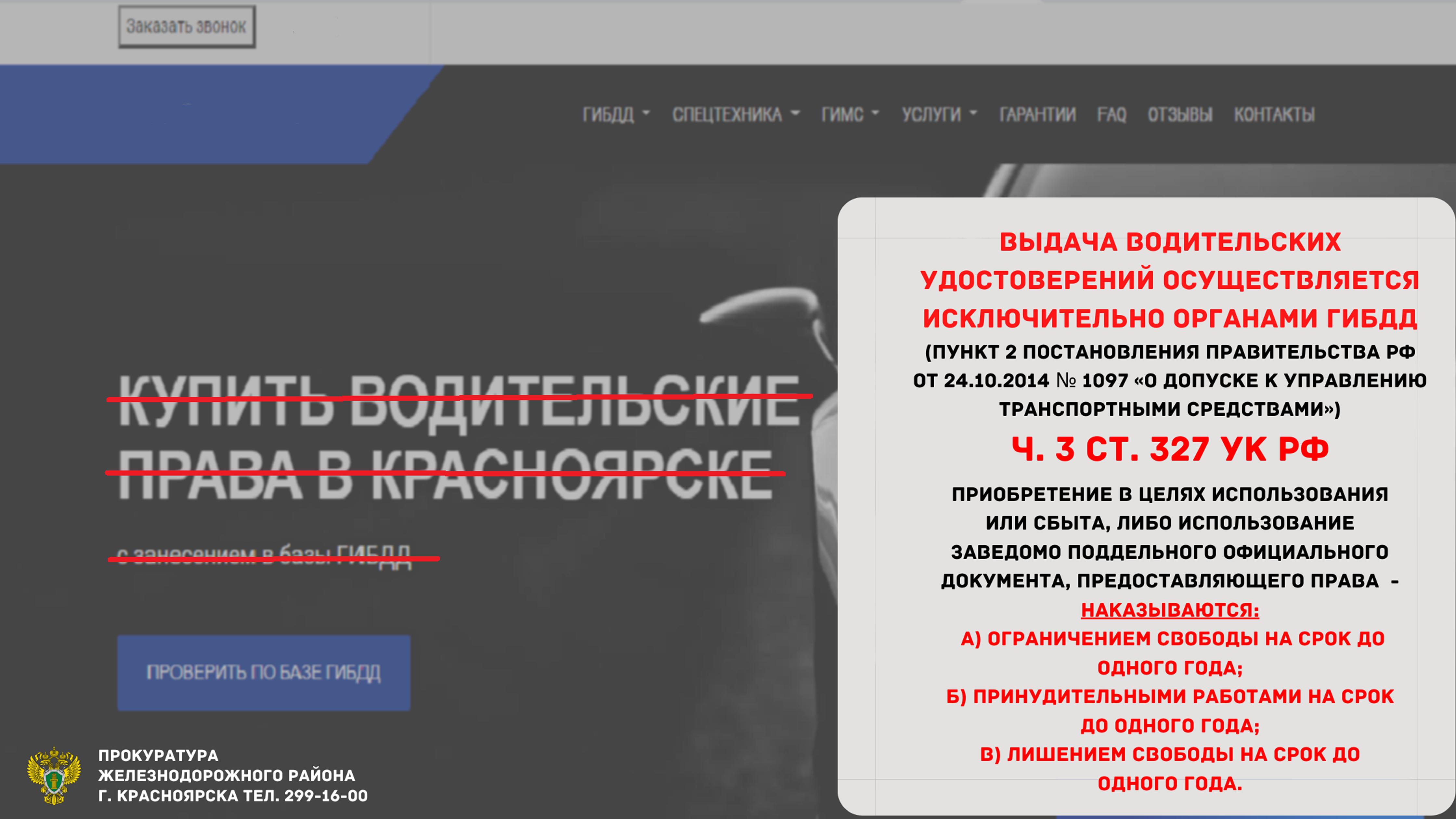 Плакат прокуратуры Железнодорожного района г. Красноярска «Выдача водительских удостоверений осуществляется исключительно органами ГИБДД»