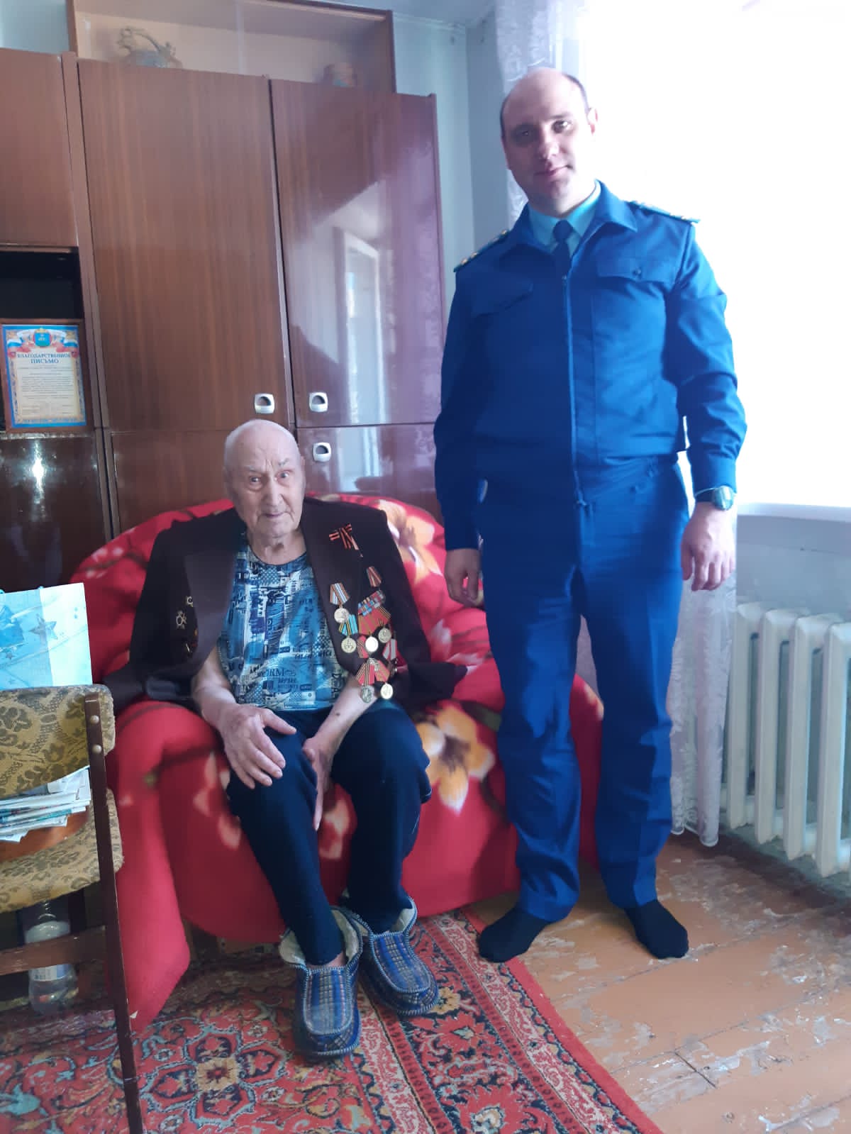 В преддверии Нового года и Рождества работники аппарата прокуратуры края поздравили с 97-летием и наступающими праздниками ветерана Великой Отечественной войны Тимошенко Николая Андреевича. Он был призван на фронт в 1942 году и за свои заслуги в военный период удостоен медалями «За боевые заслуги», «За победу над Германией в Великой Отечественной войне 1941-1945 гг.», а также Орденом Отечественной войны II степени. Поблагодарив за труд и мужество, работники прокуратуры пожелали Николаю Андреевичу крепкого здоровья, долгих лет жизни и заверили, что он всегда найдет помощь и защиту в органах прокуратуры.