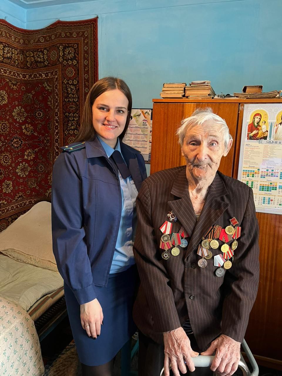 Следуя целям патриотического воспитания молодых специалистов, отдавая дань уважение и почтение старшему поколению, в поздравлении ветерана приняла участие молодой помощник прокурора района Наталья Сосновских.