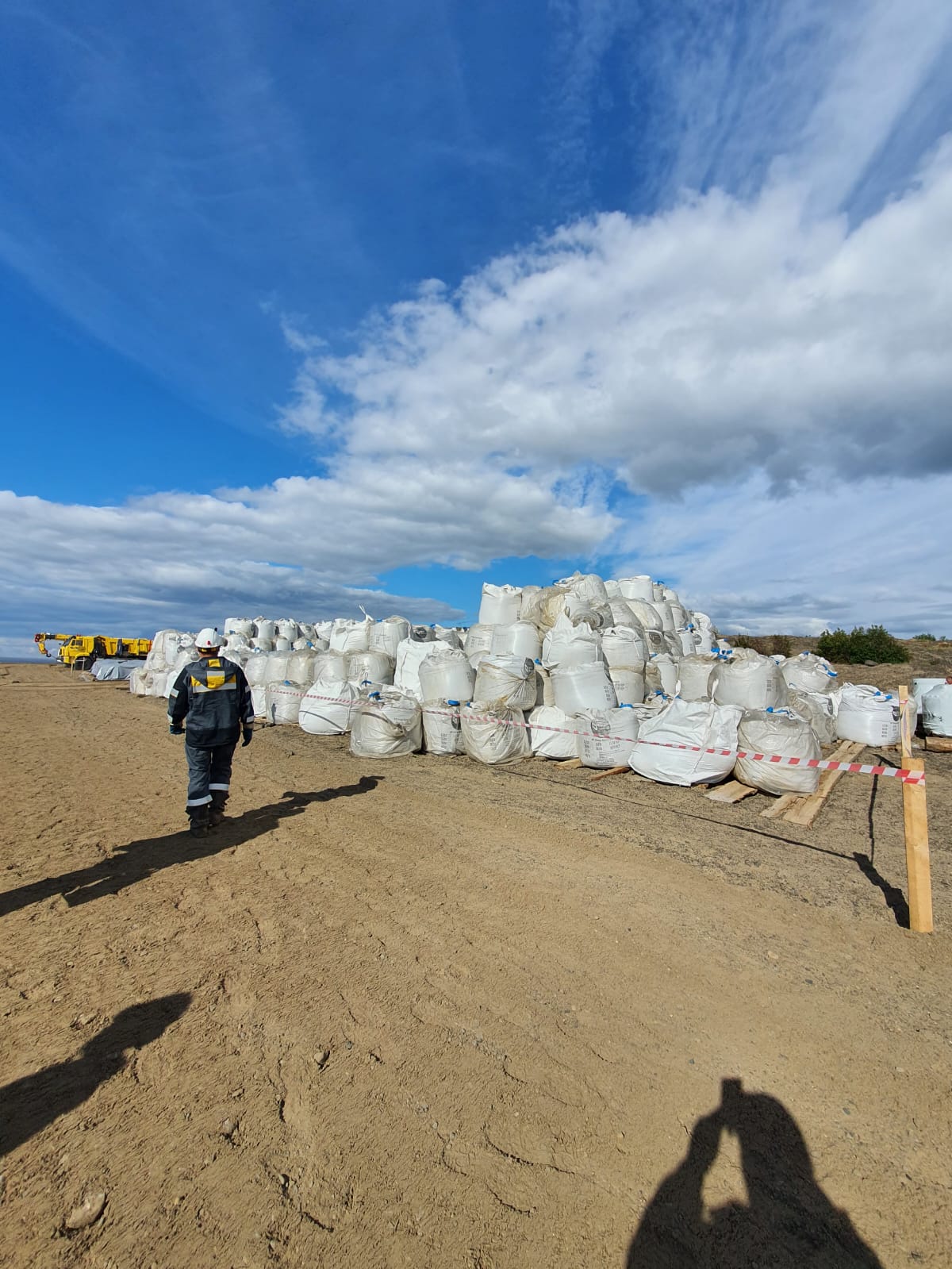 С целью оценки причиненного окружающей среде ущерба специалисты отобрали пробы грунта с места разгрузки баржи. Кроме того, из грунта изъят закопанный мешок и помещен в контейнер, взяты пробы его содержимого.