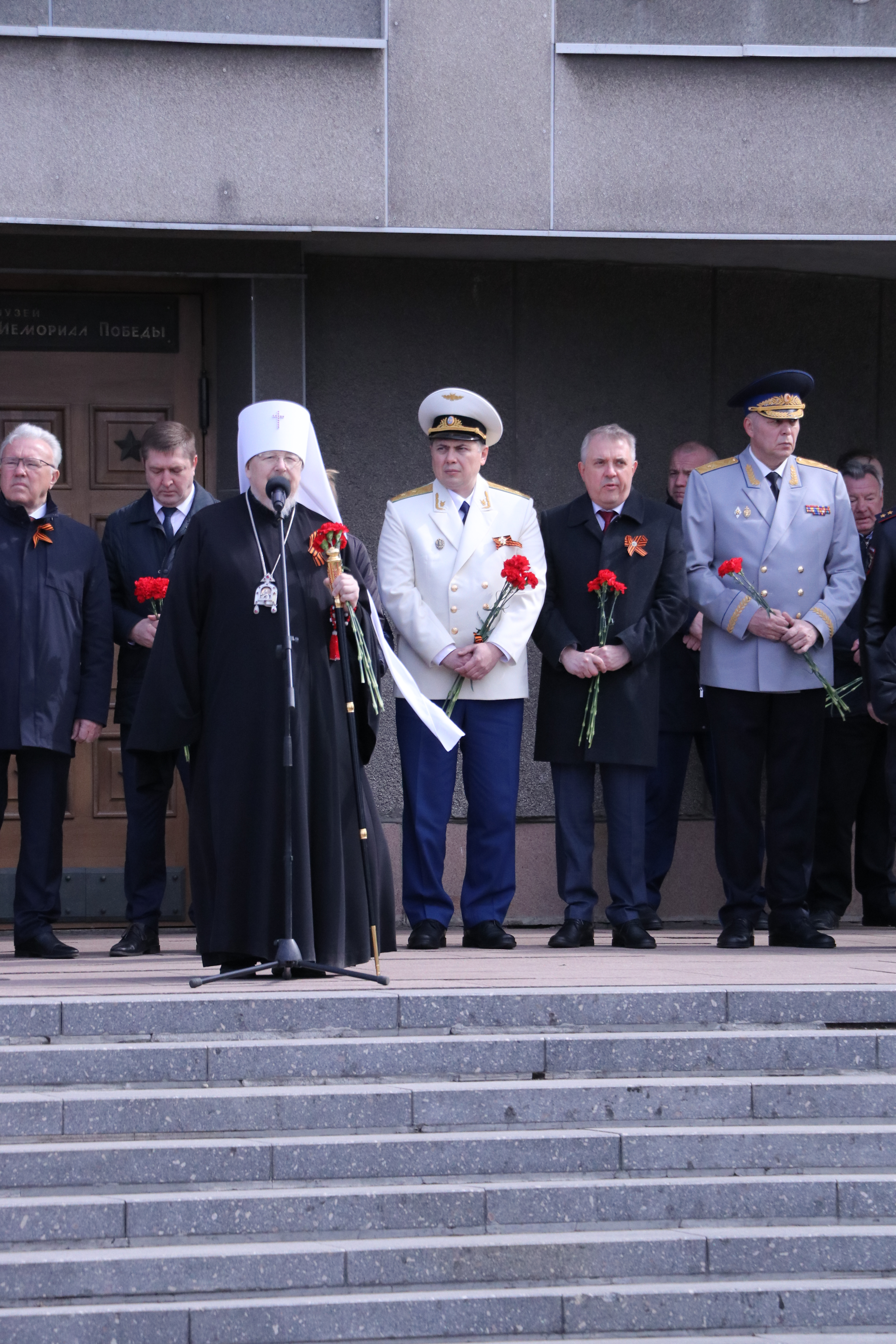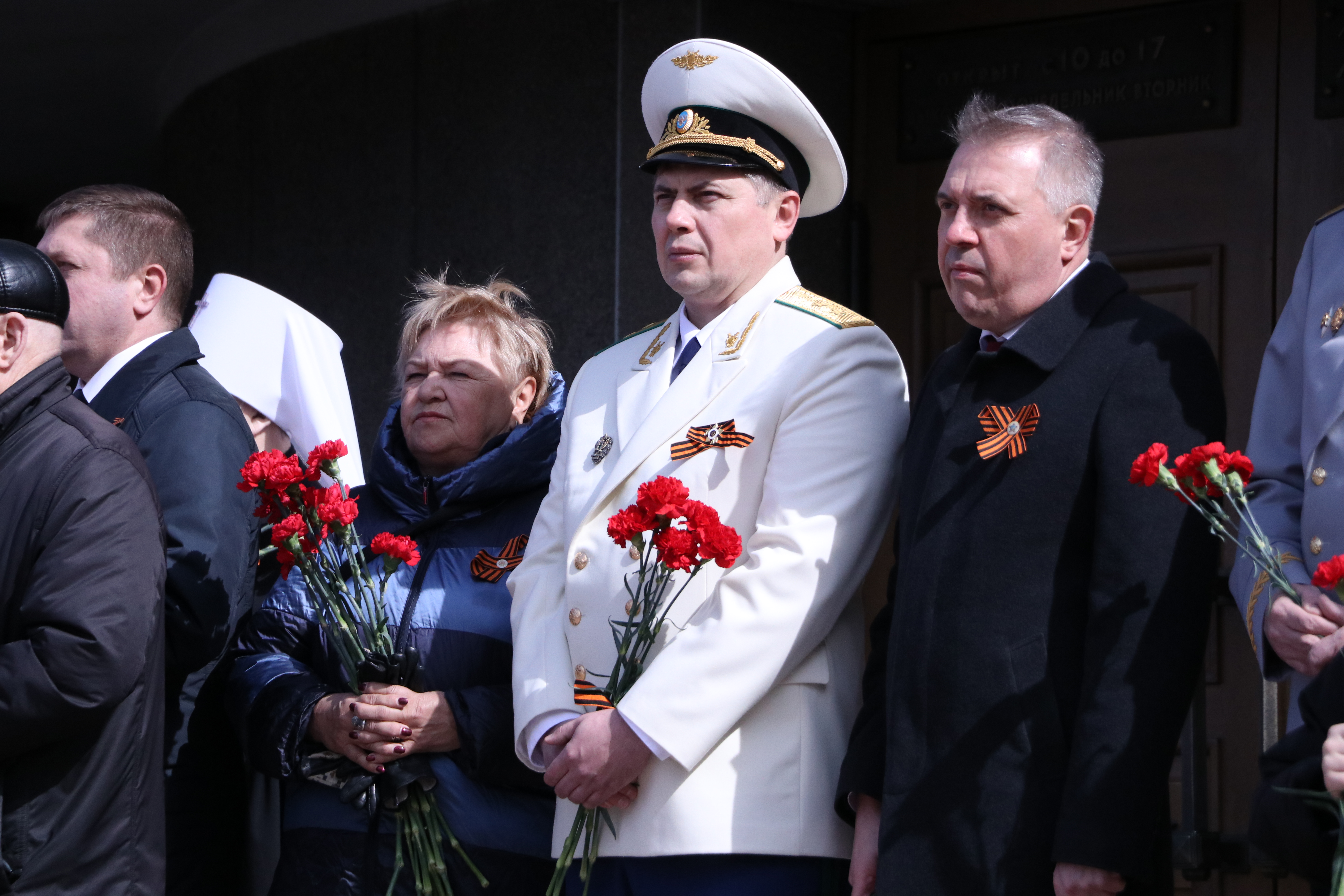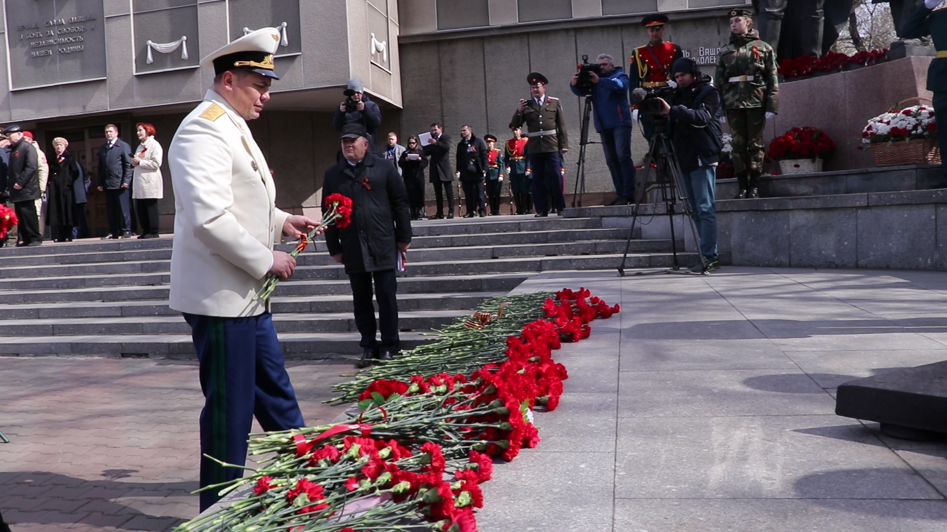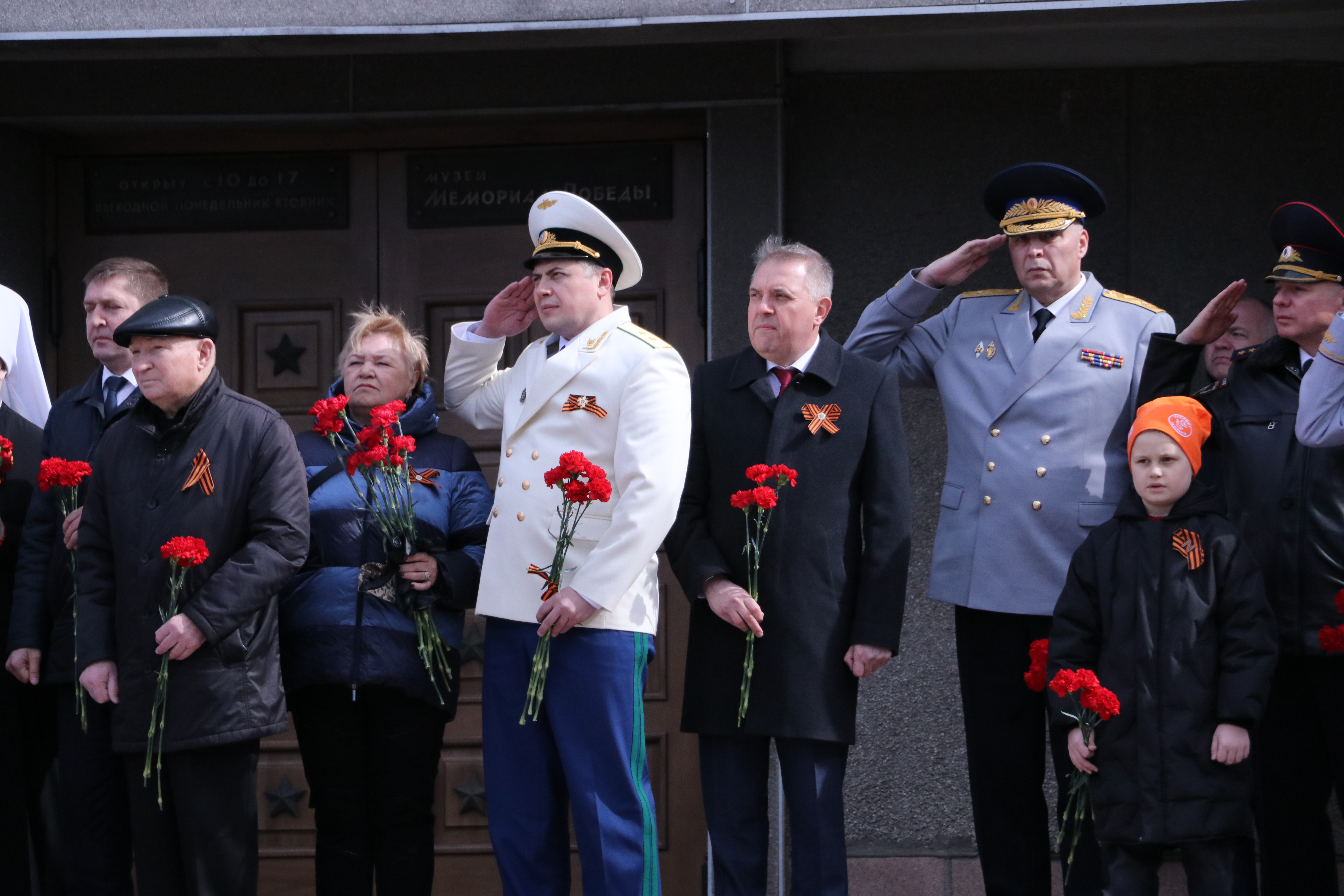 ????Сегодня прокурор края Роман Тютюник принял участие в церемонии возложения венков и цветов к «Вечному огню» на музее «Мемориал Победы»