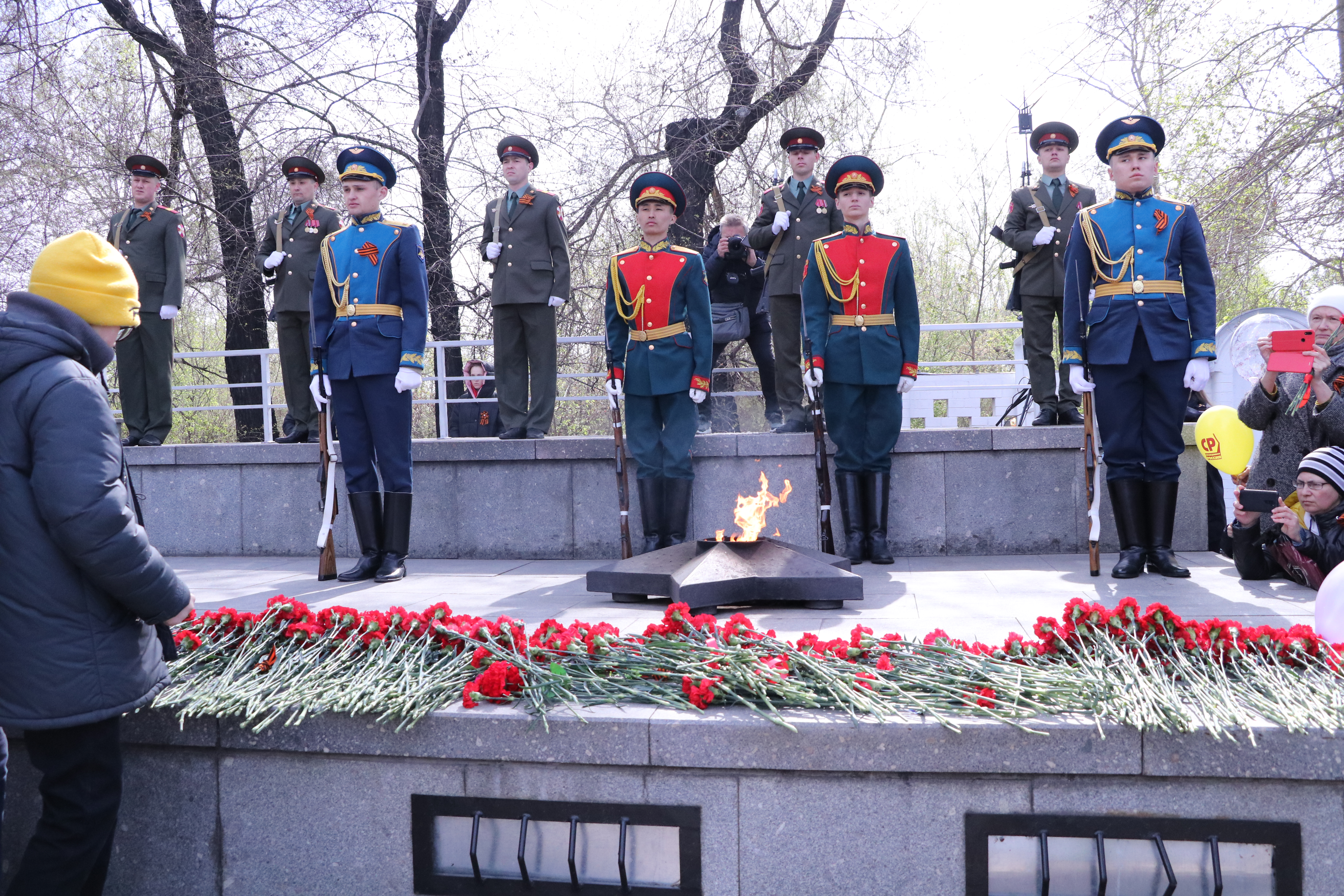 Участники митинга возложили венки и цветы к Вечному огню, почтили память павших в Великой Отечественной войне минутой молчания и троекратным ружейным залпом.
