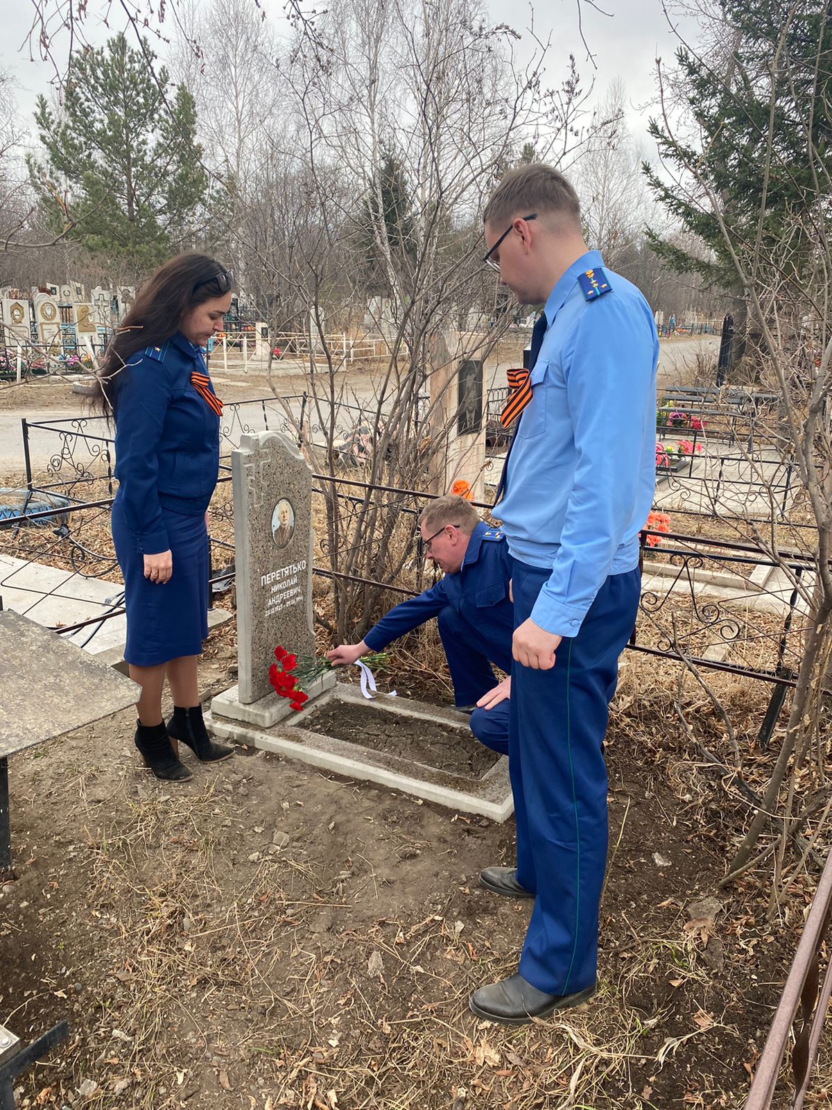 Работники прокуратуры Ленинского района г. Красноярска в связи с предстоящим празднованием 77-й годовщины Победы советского народа в Великой Отечественной войне 1941-1945 г.г. посетили место захоронения Перетятько Н.А. и навели порядок на могиле. Отдавая дань памяти ветерану, они возложили к могиле цветы.
