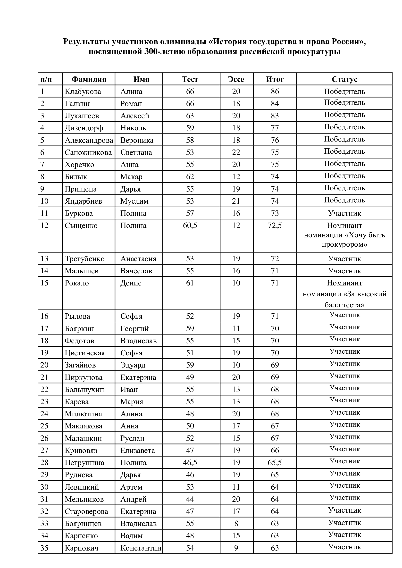 Подведены итоги региональной олимпиады по истории государства и права России, приуроченной к 300-летию образования российской прокуратуры