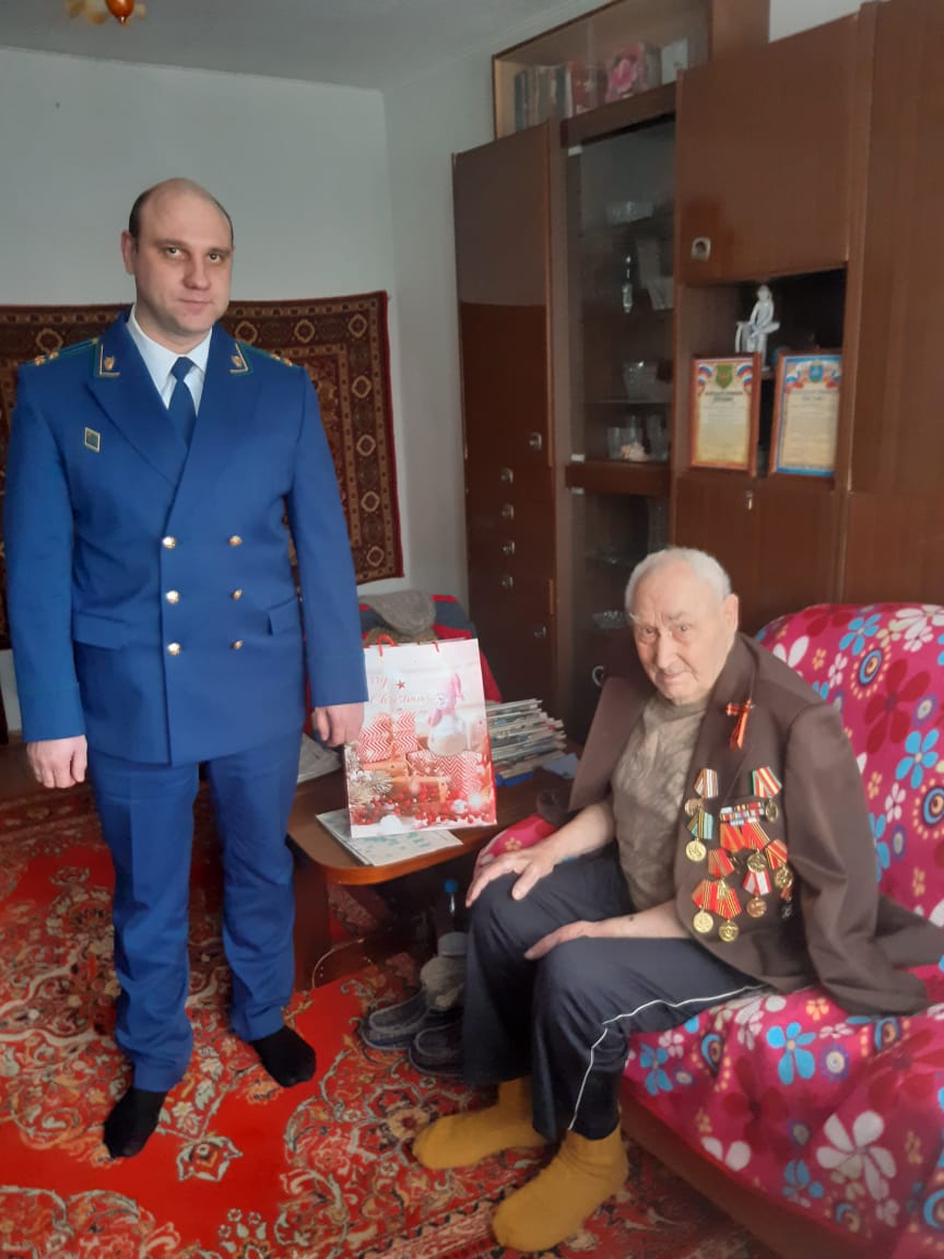 Прокурор Березовского района навестил ветерана Великой Отечественной Войны Губина Геннадия Кузьмича, поздравил его с праздником и вручил подарок.