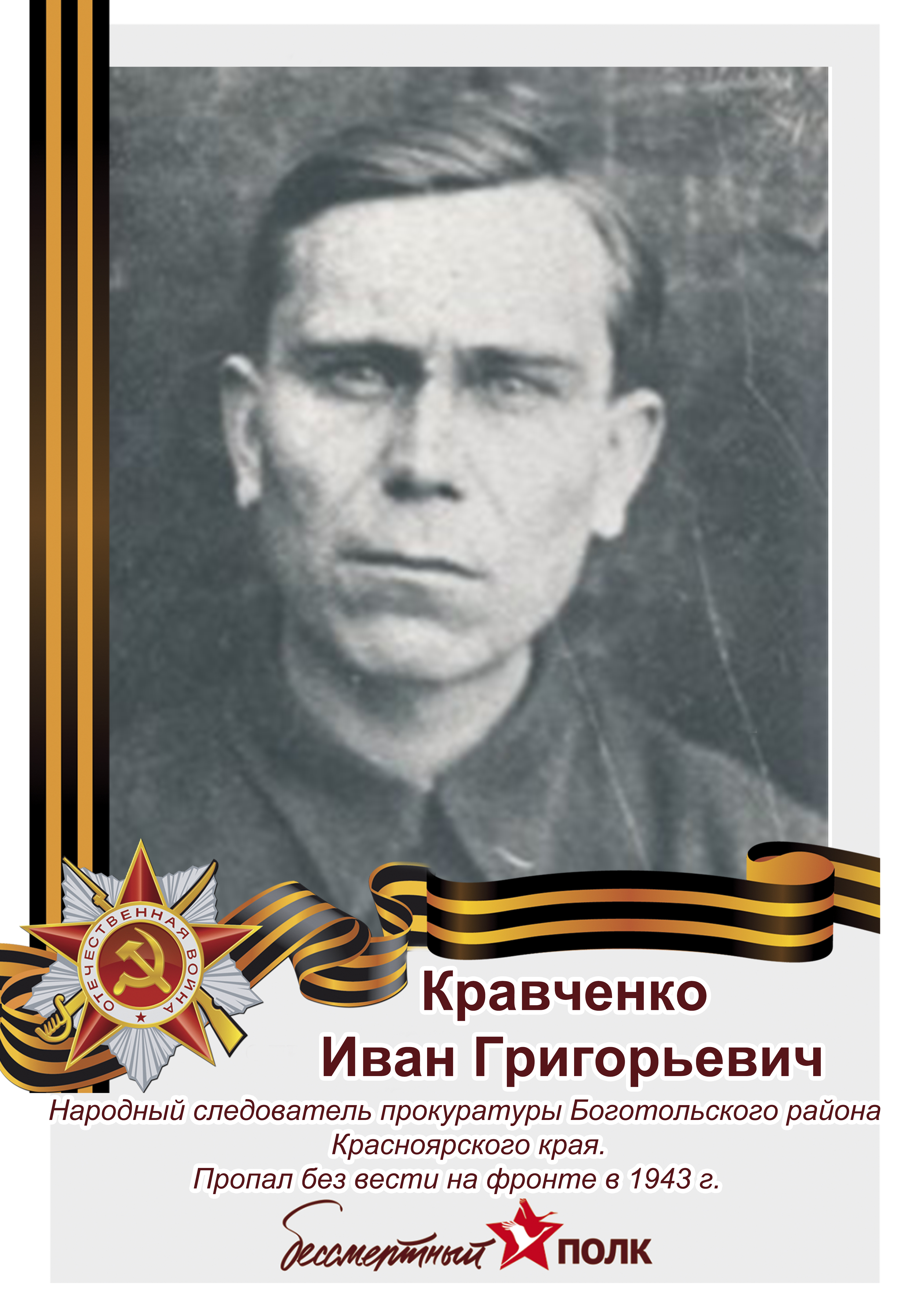 По инициативе коллектива и Совета ветеранов прокуратуры Красноярского края в память о прокурорах и следователях, погибших за свободу и независимость нашей Родины, подготовлены материалы для участия в акции «Бессмертный полк Онлайн».