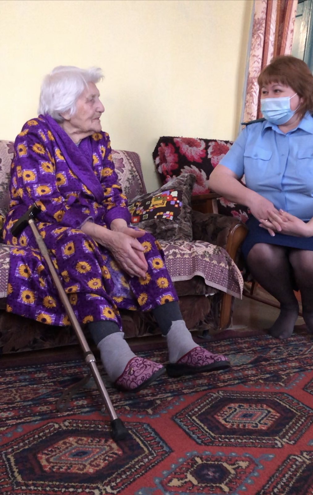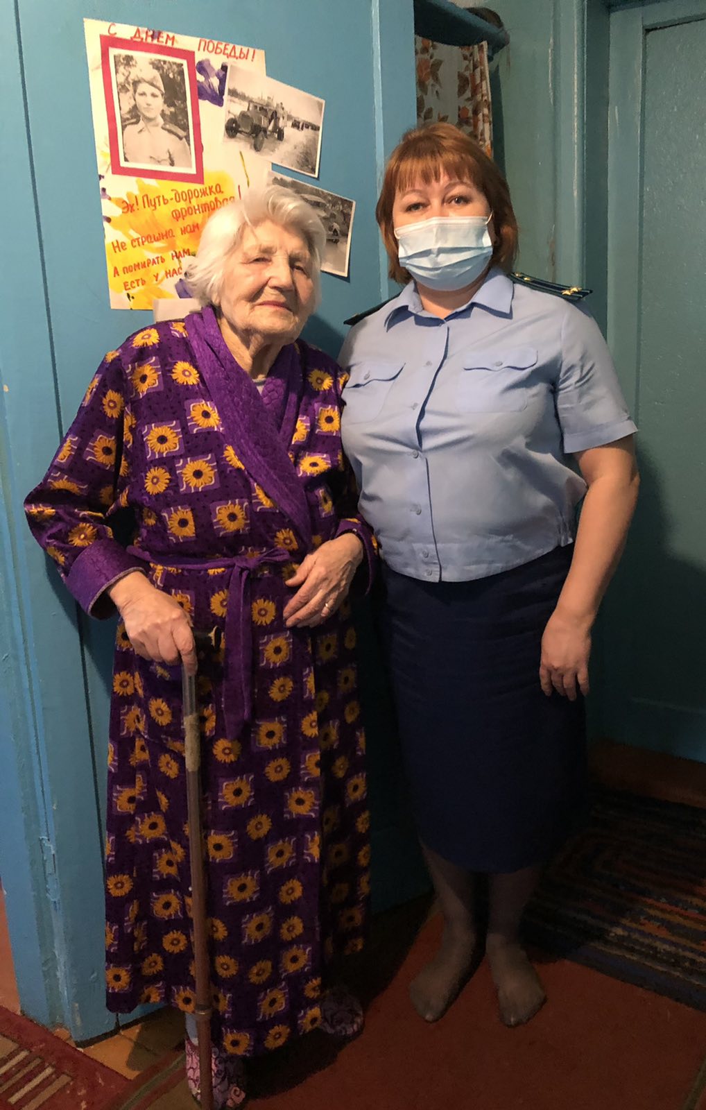 Работники прокуратуры Сухобузимского района в преддверии празднования победы в Великой Отечественной войне посетили ветерана войны - Орловцеву Алимпиаду Петровну.