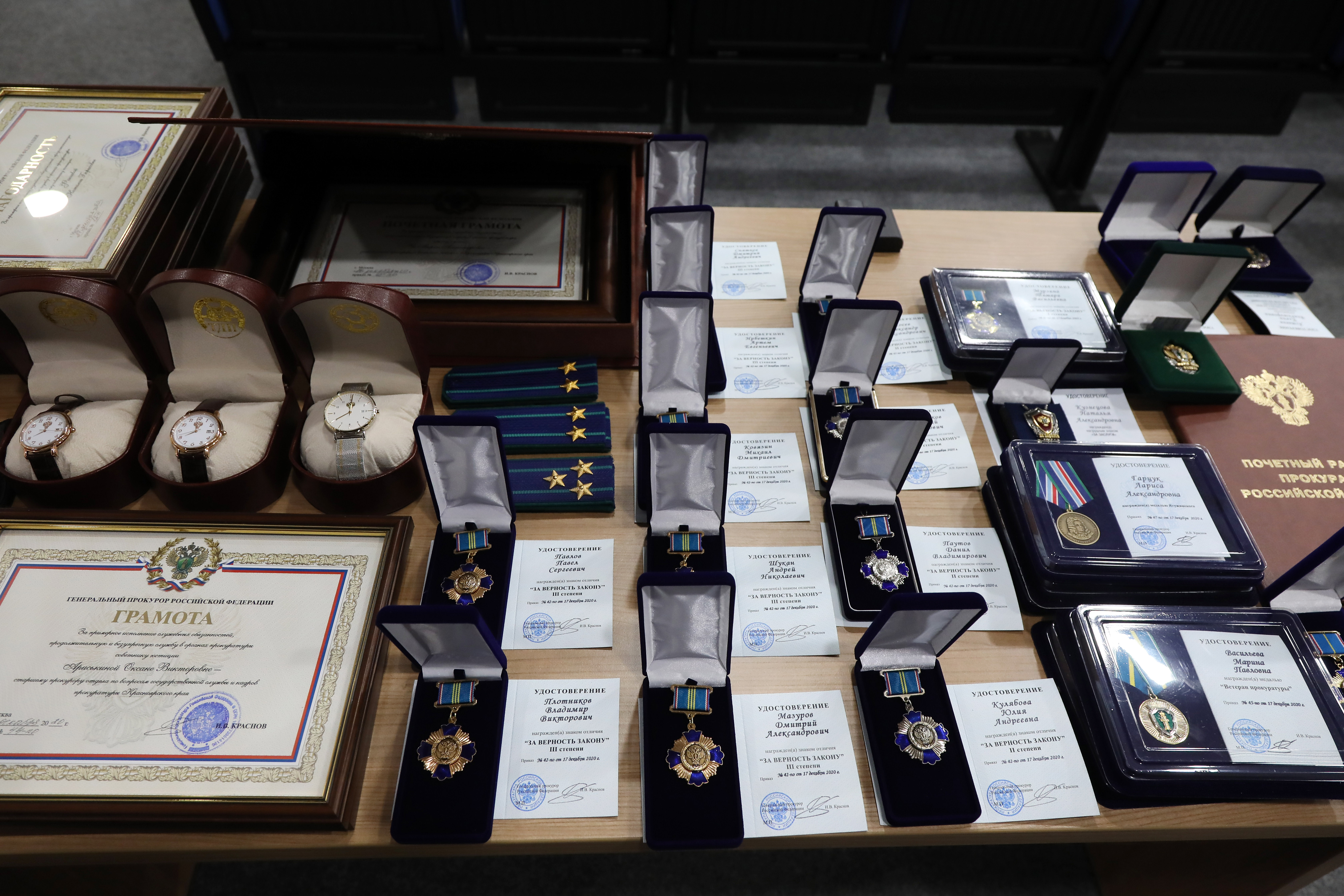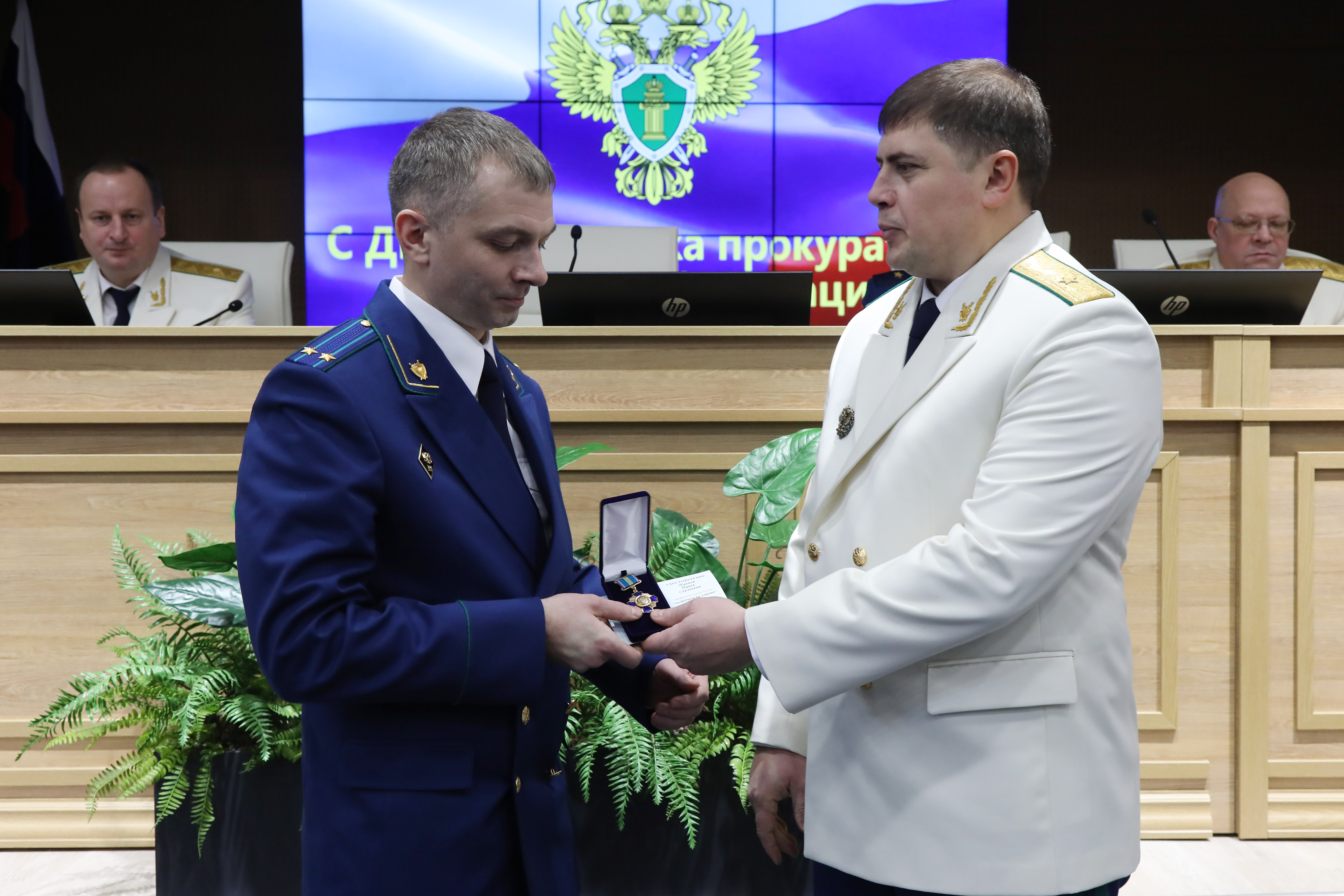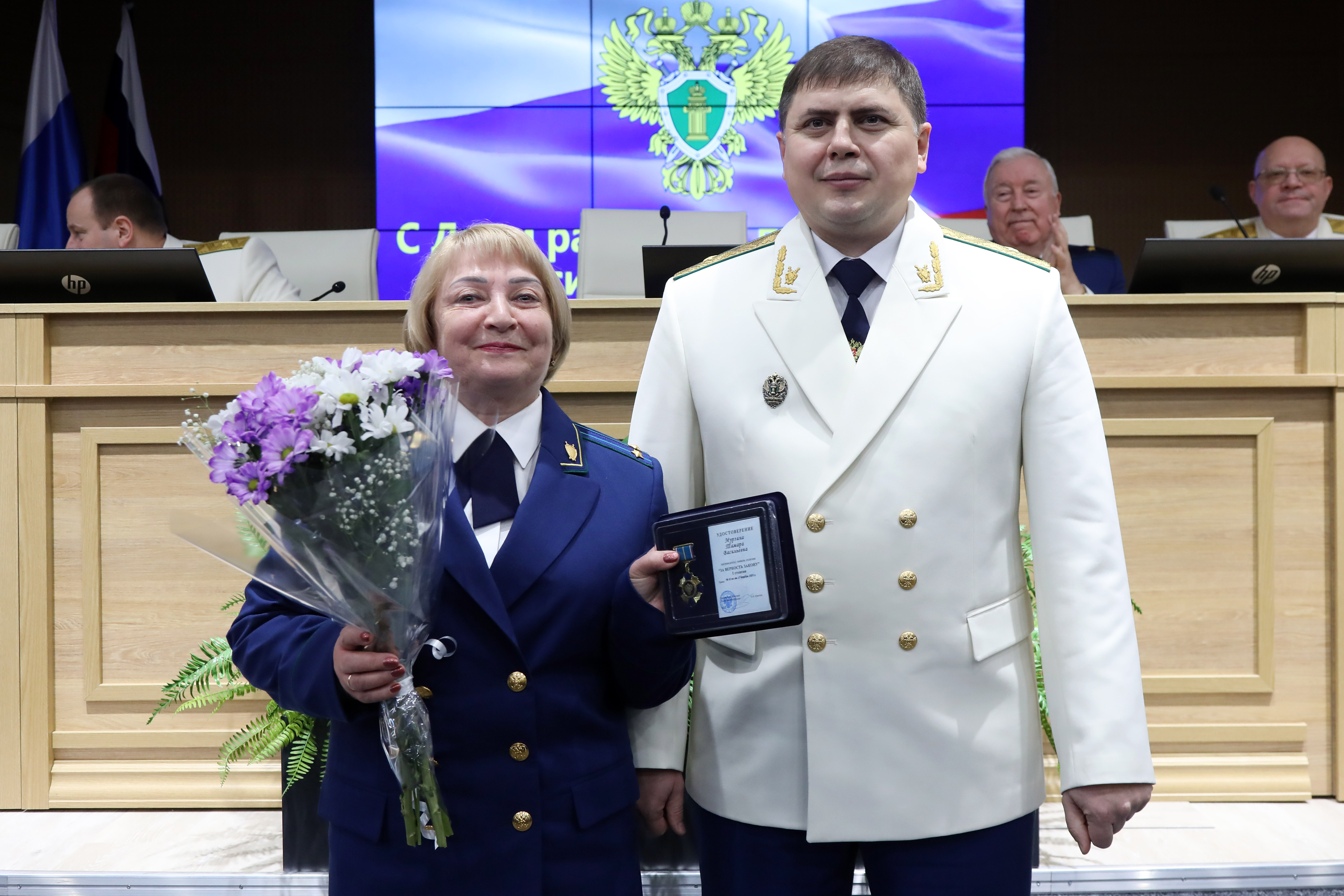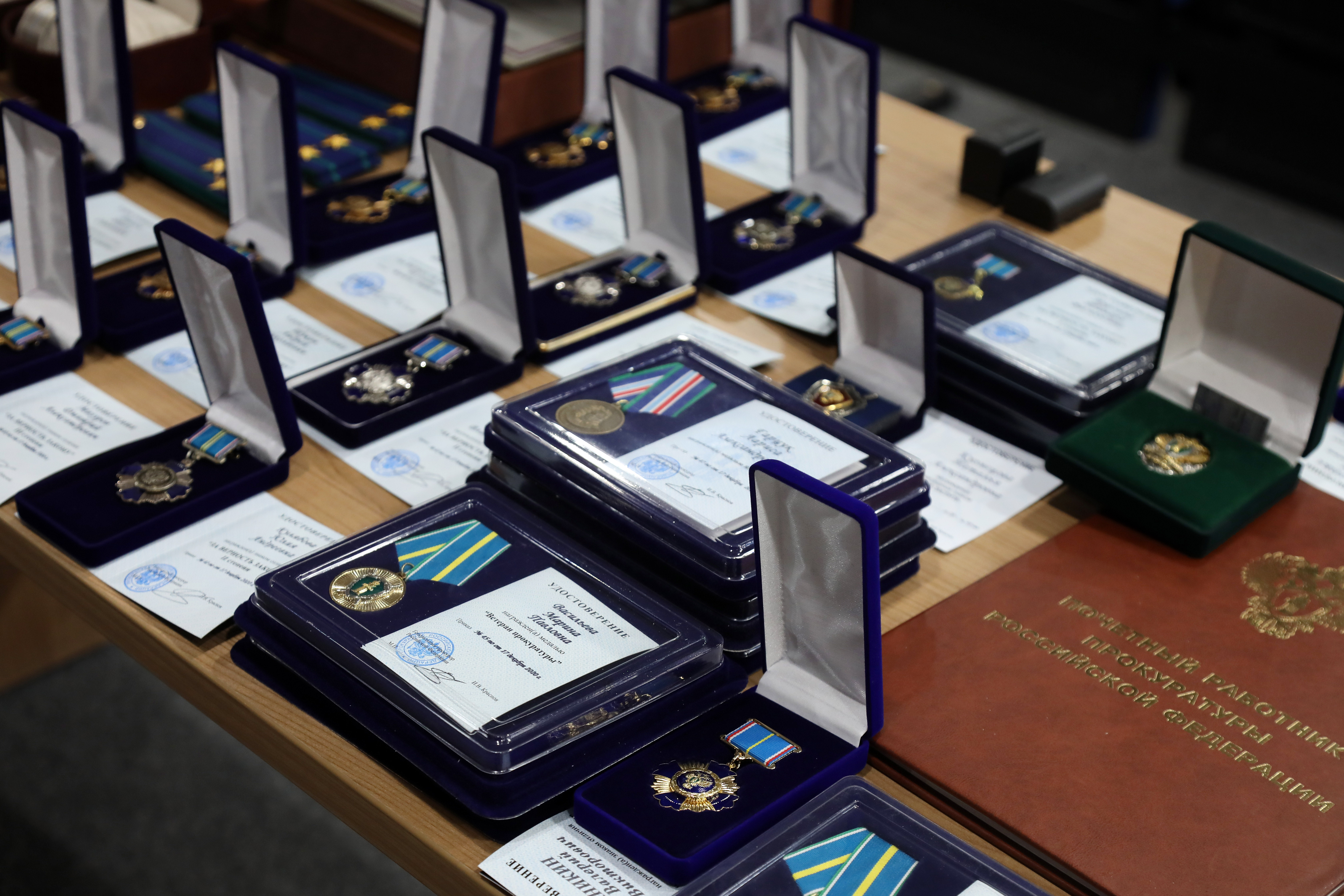 Затем в торжественной обстановке прокурор края Роман Тютюник вручил награды Генерального прокурора России 40 отличившимся сотрудникам и 4 ветеранам за примерное исполнение служебных обязанностей, заслуги в деле укрепления законности и правопорядка:
