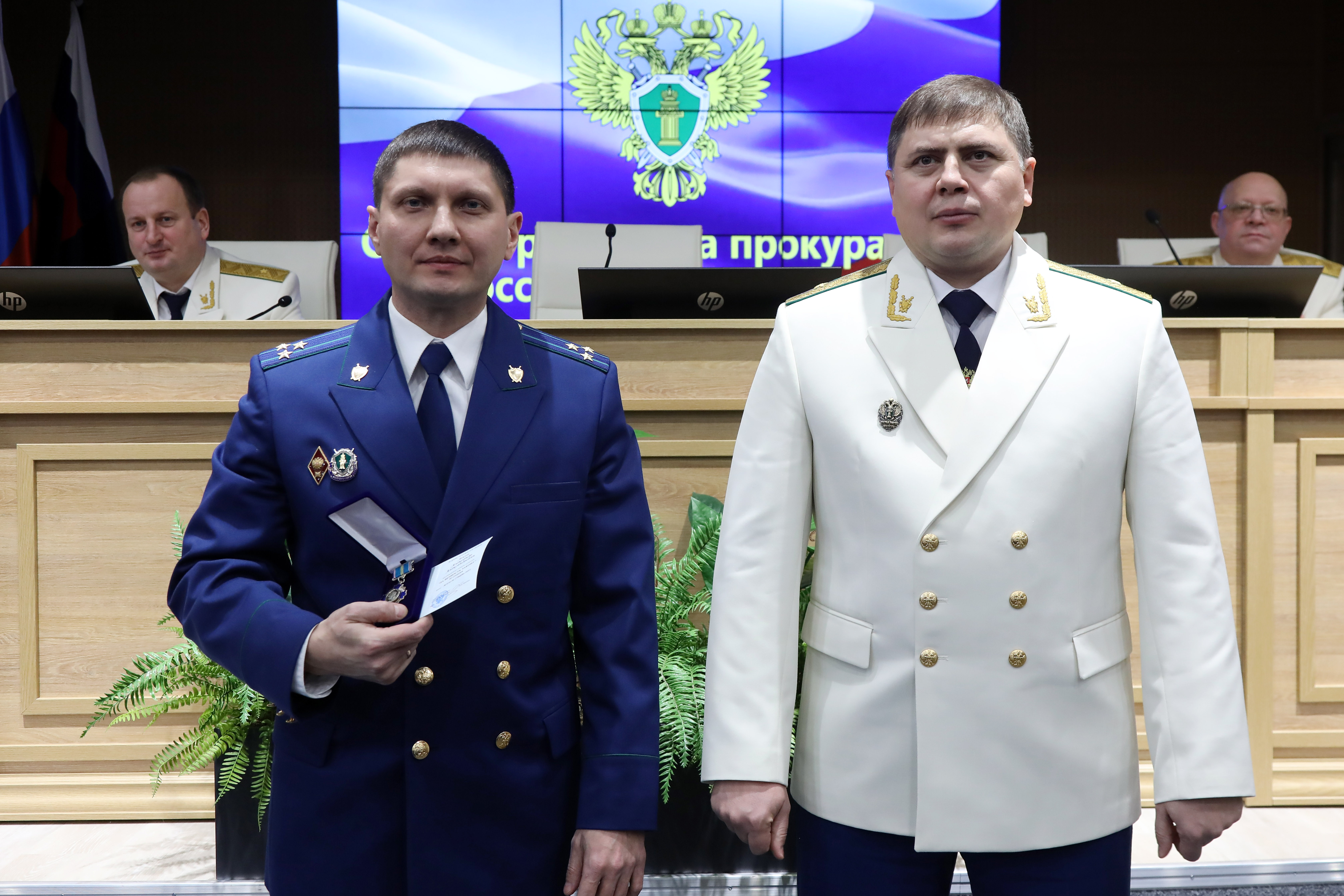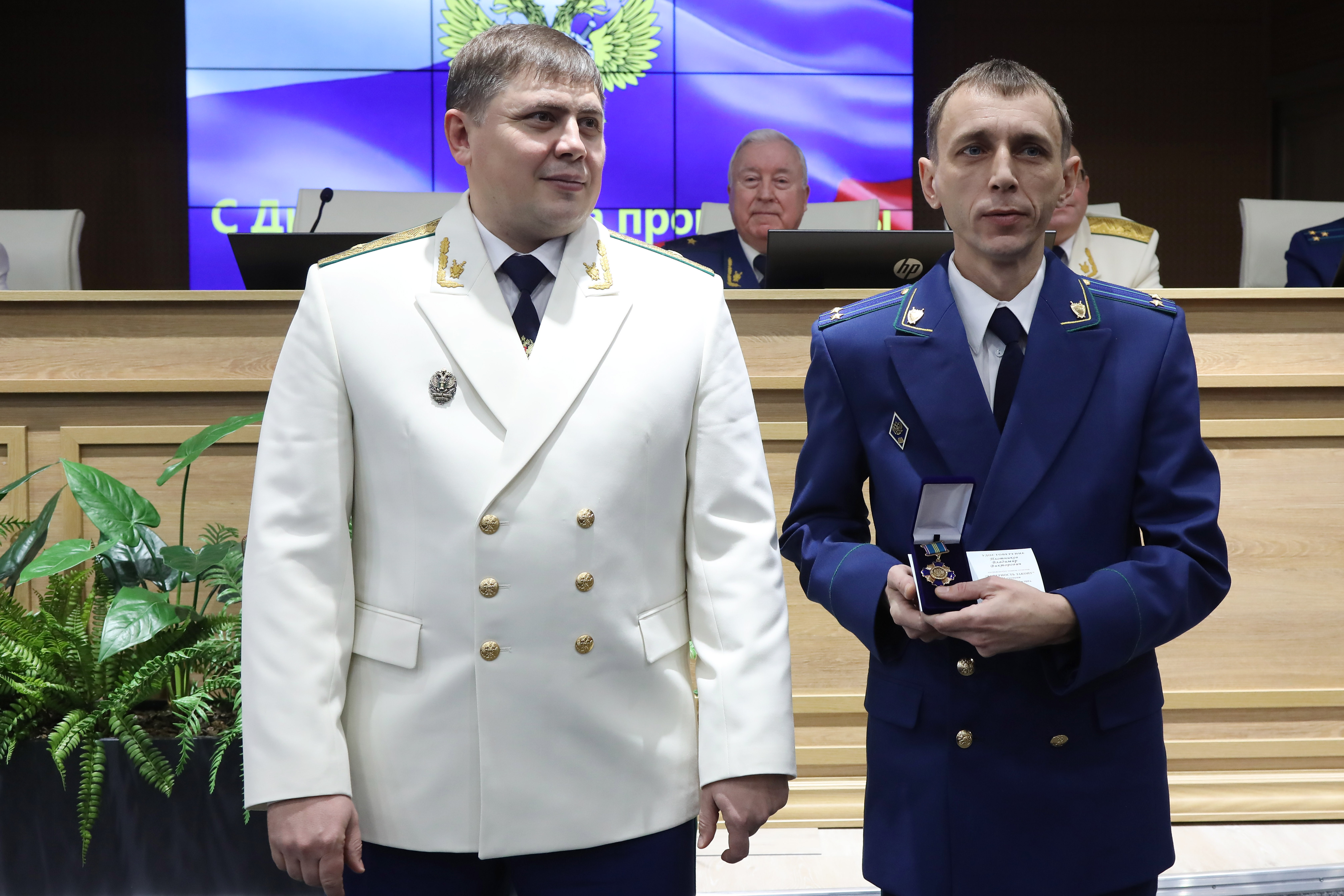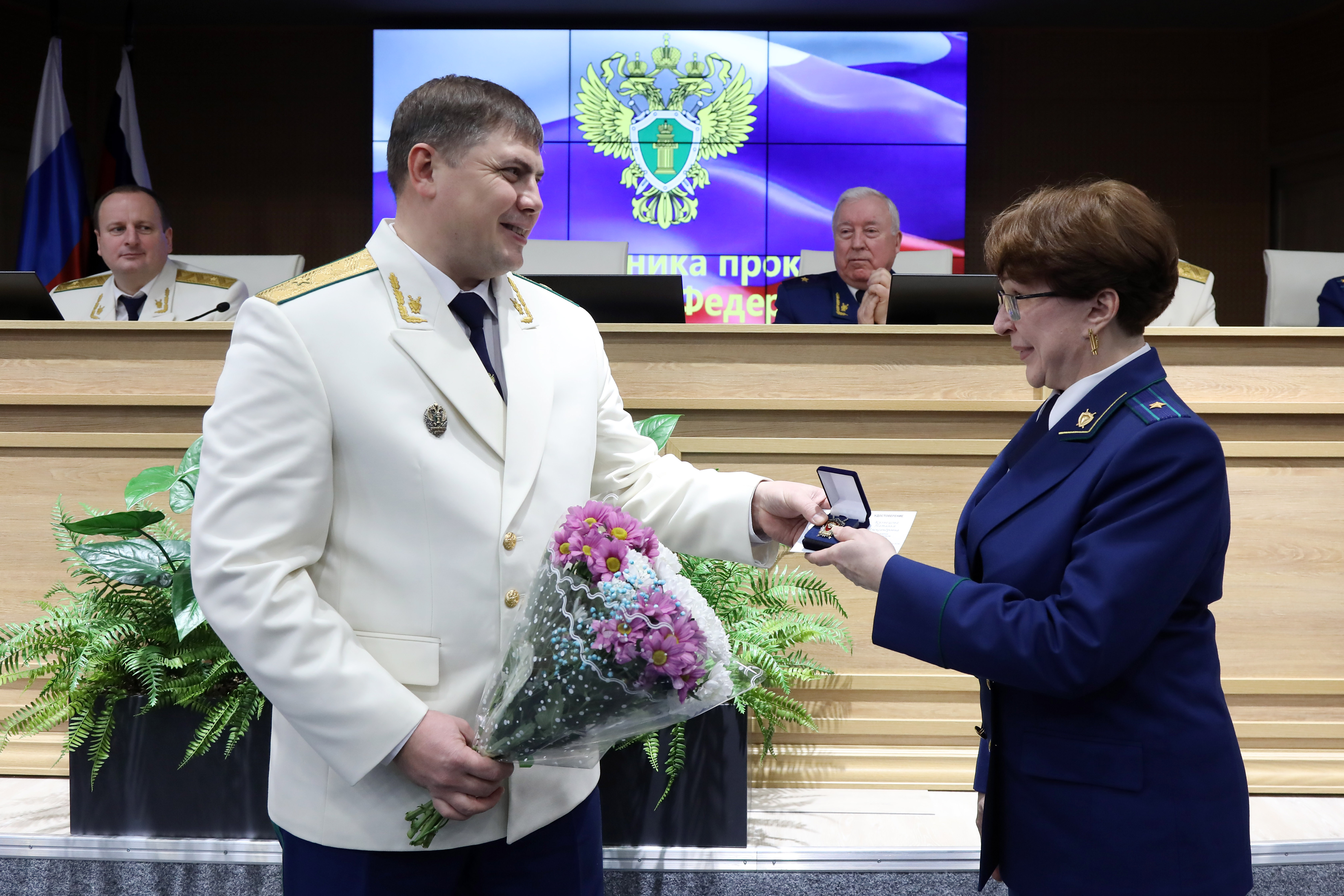 Затем в торжественной обстановке прокурор края Роман Тютюник вручил награды Генерального прокурора России 40 отличившимся сотрудникам и 4 ветеранам за примерное исполнение служебных обязанностей, заслуги в деле укрепления законности и правопорядка: