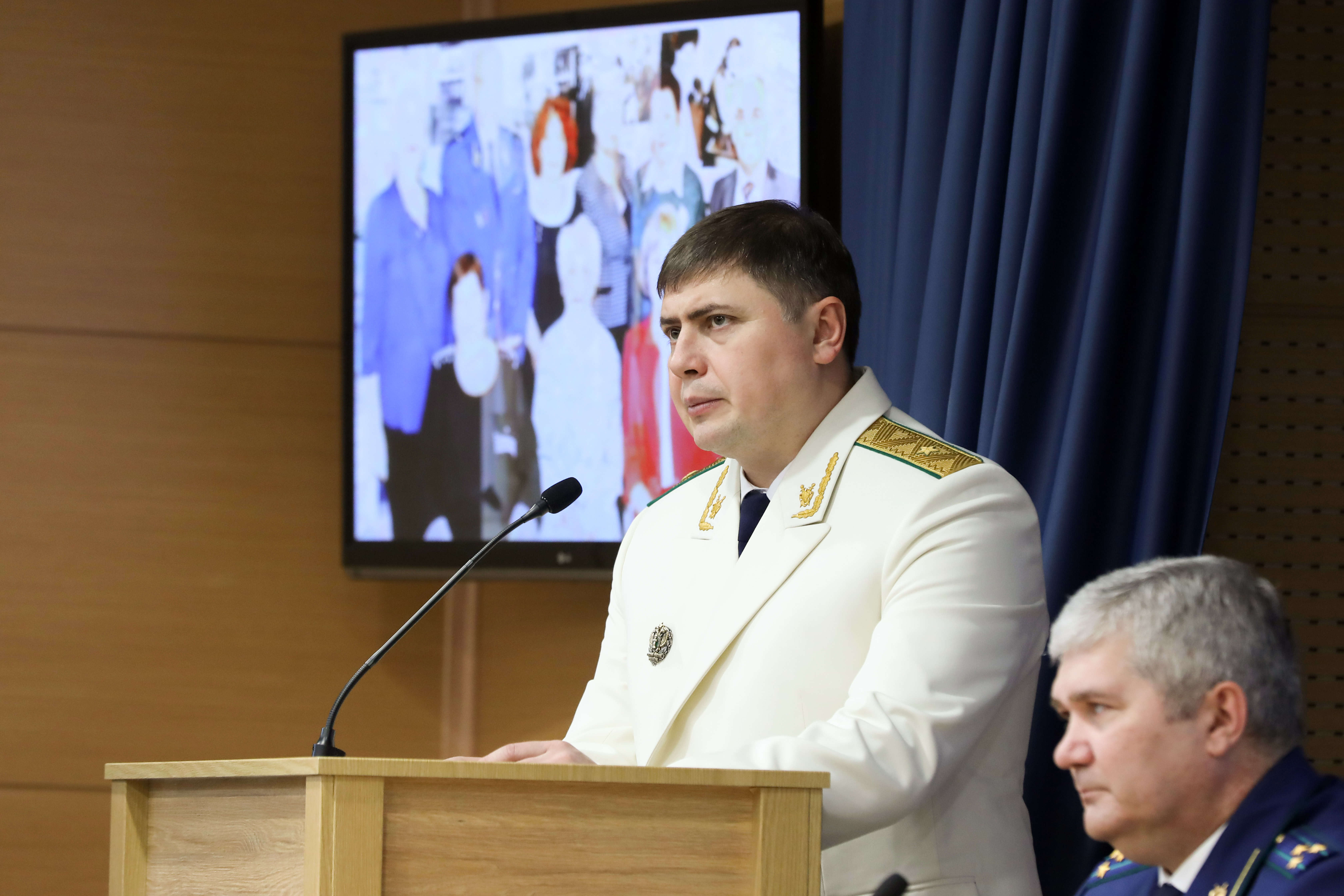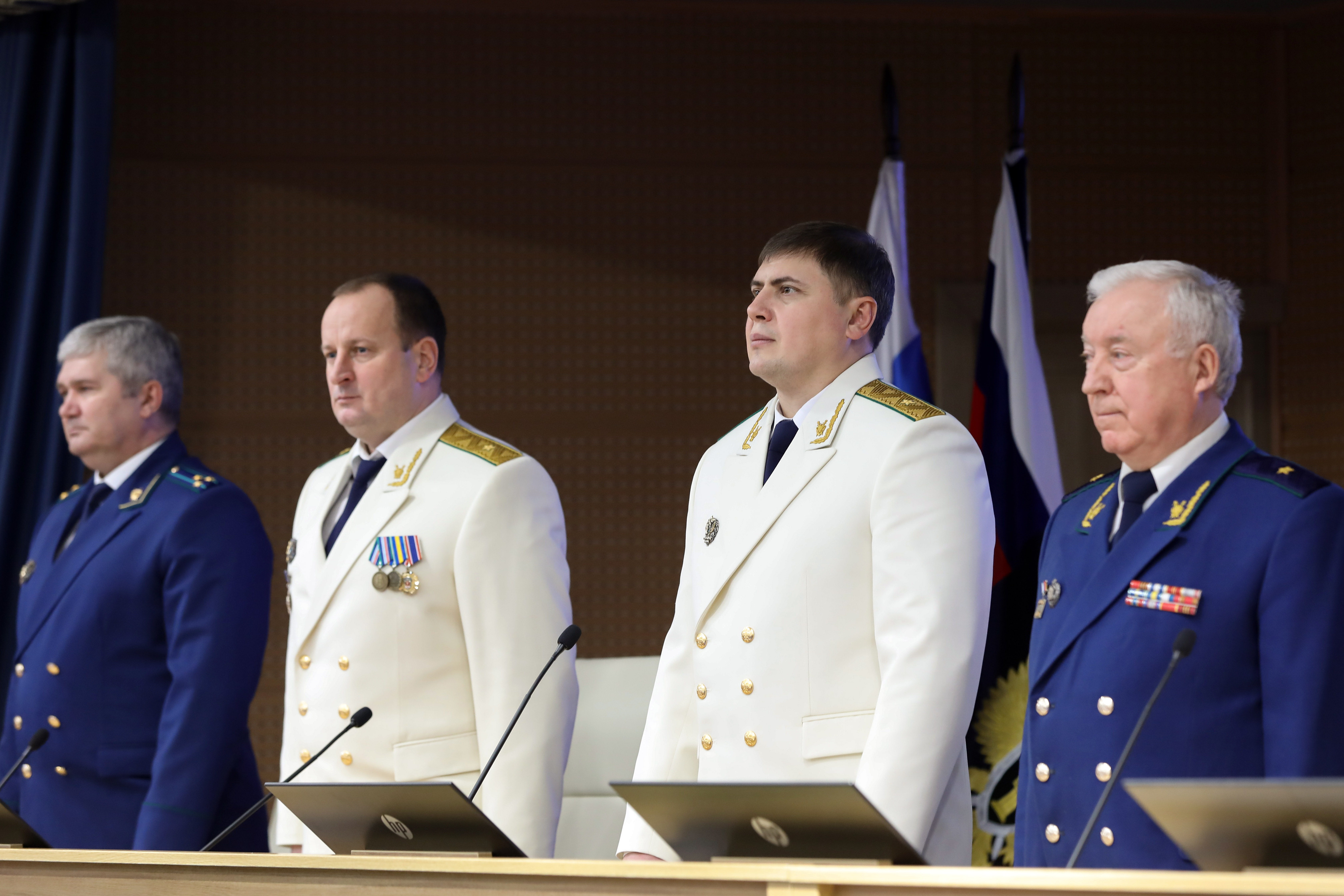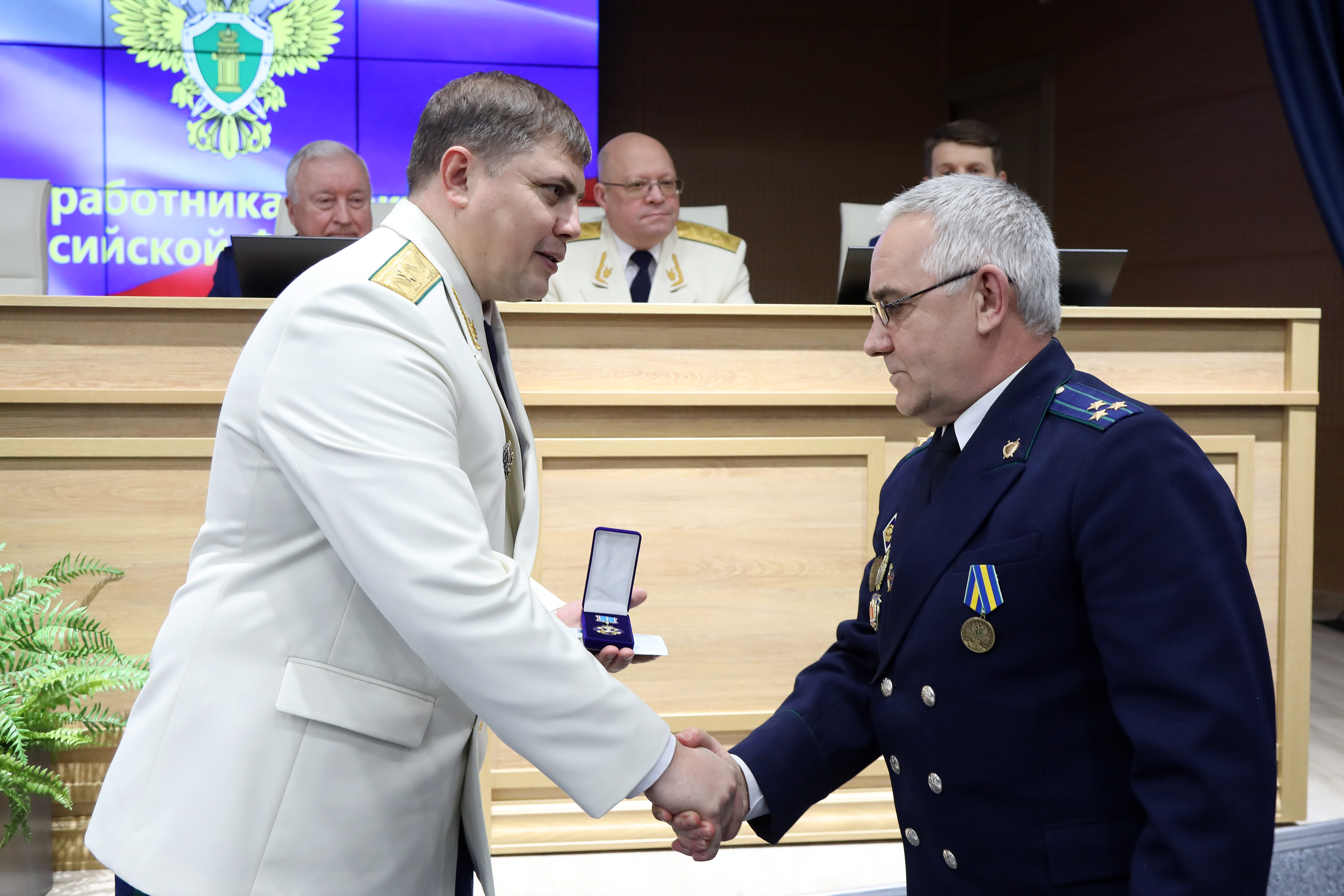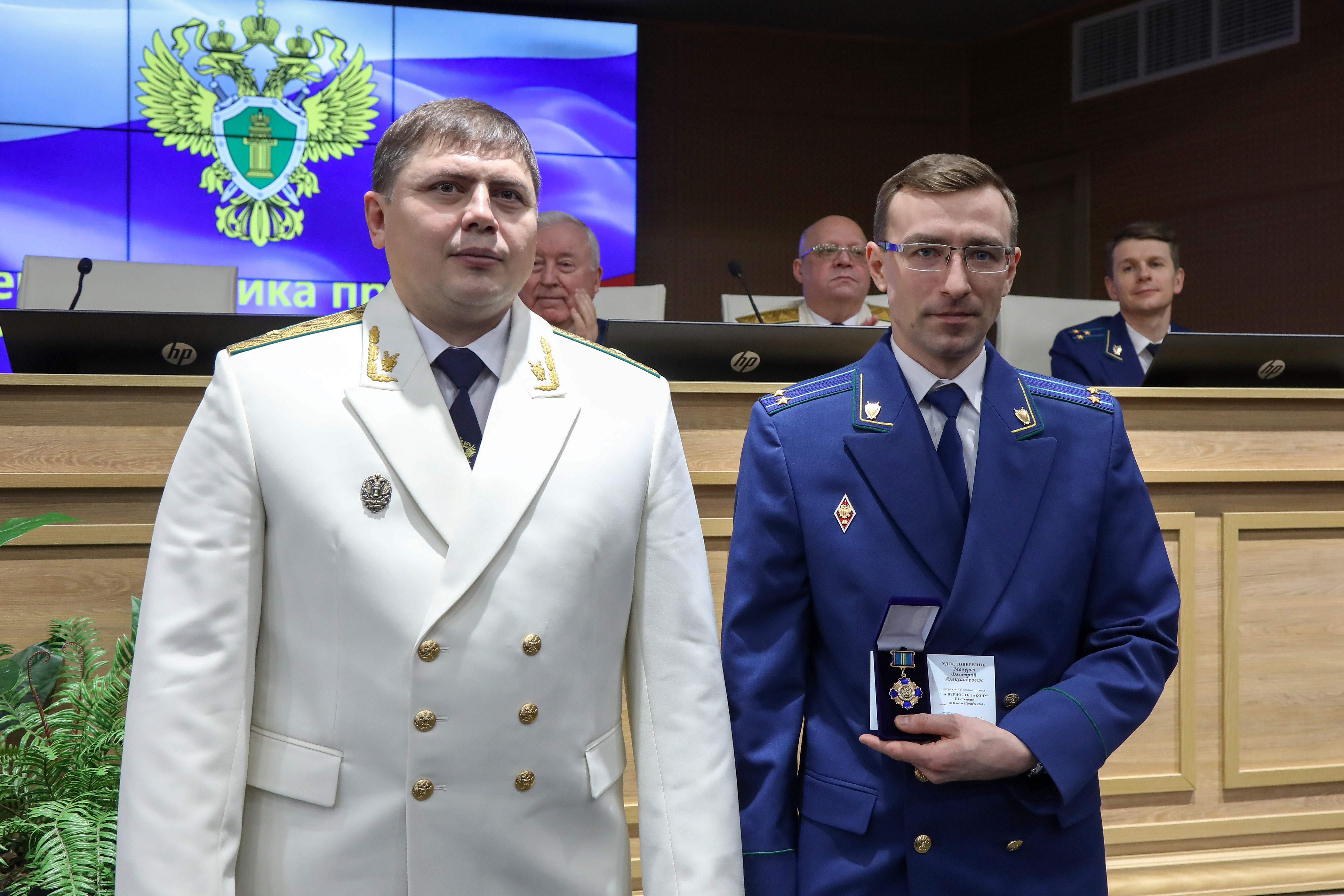 Затем в торжественной обстановке прокурор края Роман Тютюник вручил награды Генерального прокурора России 40 отличившимся сотрудникам и 4 ветеранам за примерное исполнение служебных обязанностей, заслуги в деле укрепления законности и правопорядка: