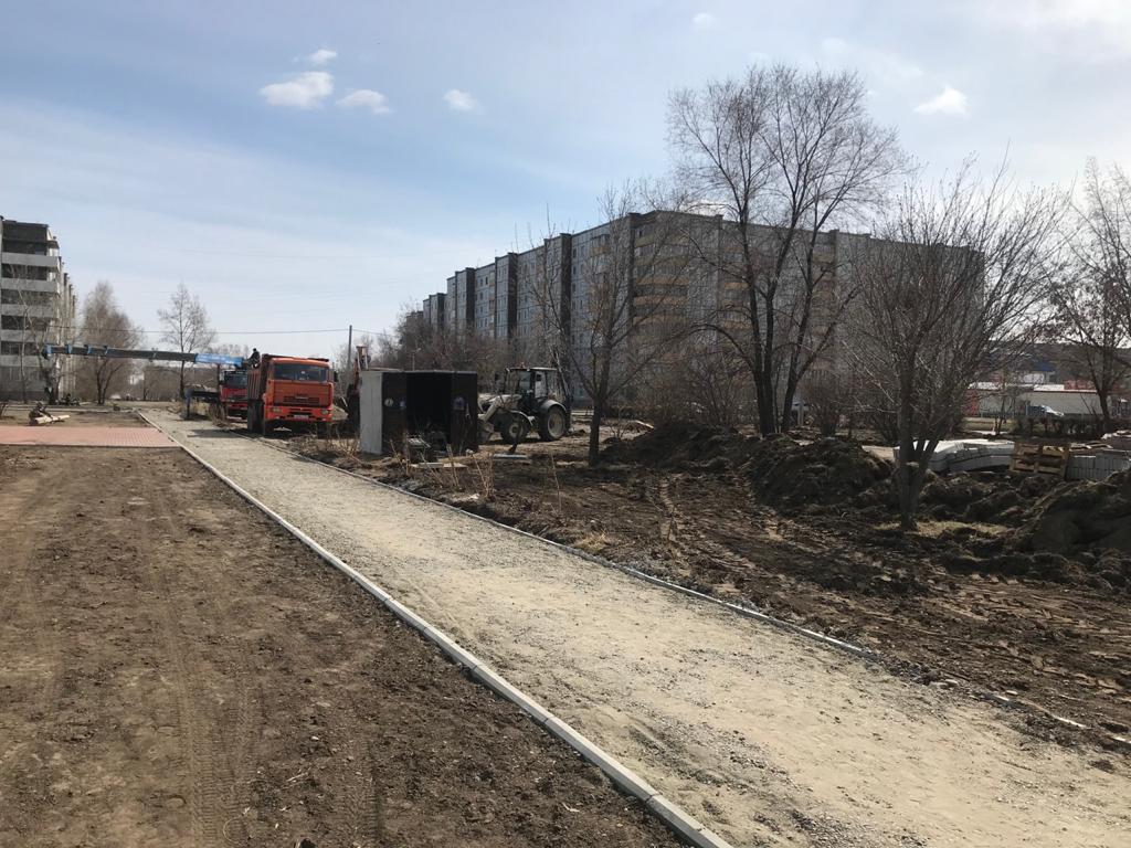 В настоящее время подрядной организацией производятся земляные работы и устройство пешеходных дорожек. В срок до августа текущего года контрактом также предусмотрены работы по укладке брусчатого покрытия с устройством основания, тротуарного бордюра, площадки из щебня, монтажные работы и устройство малых архитектурных форм, а также посадка деревьев и кустарников.